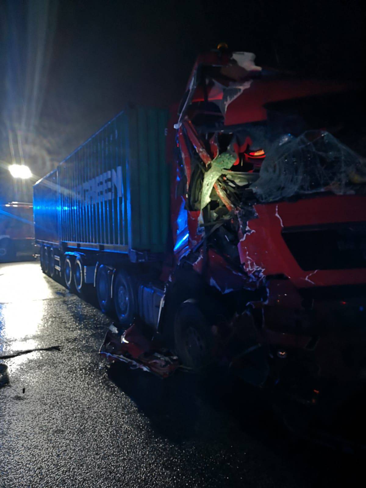Do zdarzenia doszło około 1.30 w nocy na 337,6 kilometrze autostrady A1 w kierunku Katowic, na wysokości zjazdu, w który skręcić chciał zastęp. Jak przekazano, było to około dwóch kilometrów od miejsca, gdzie strażacy wcześniej prowadzili działania przy innej kolizji.
