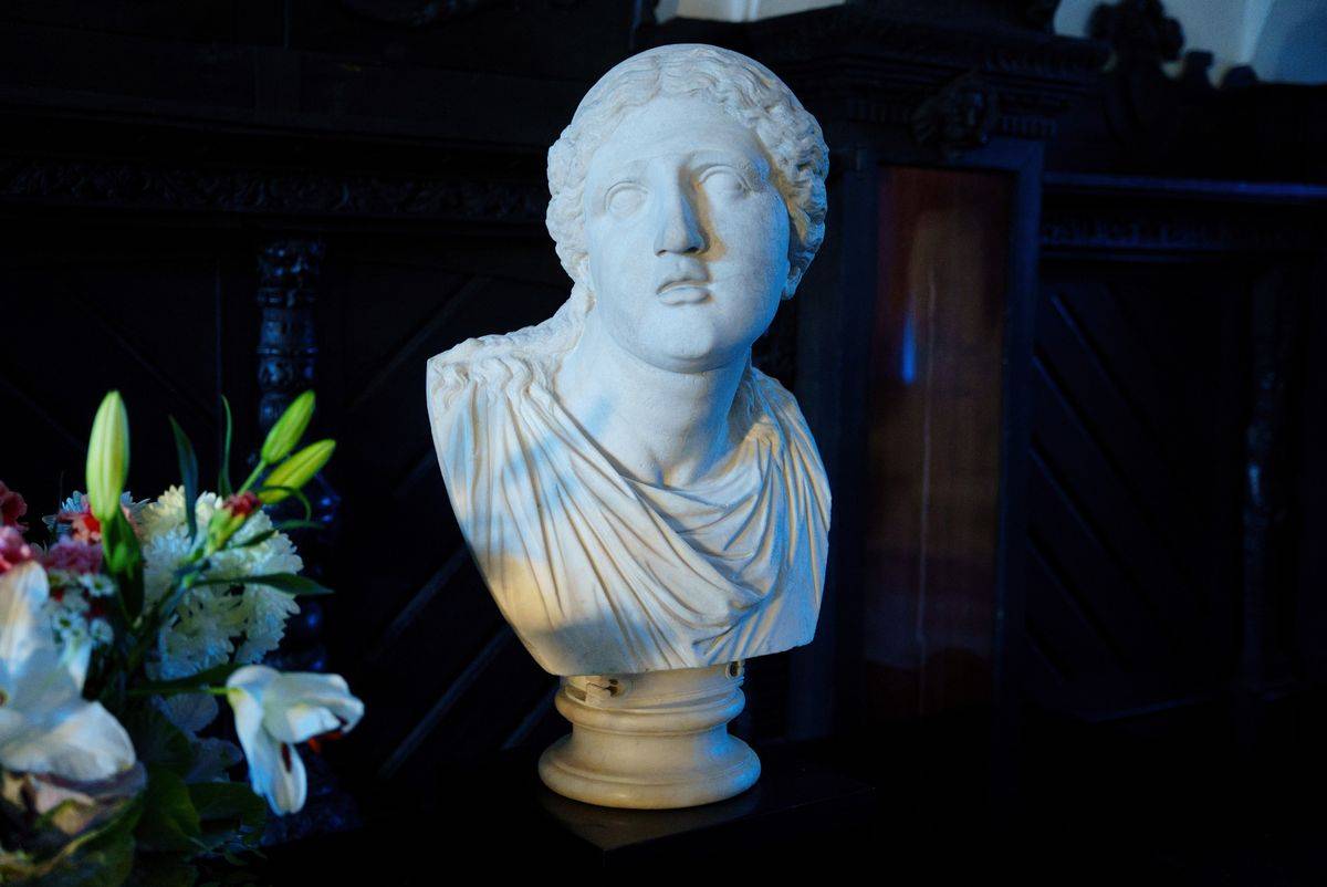 Na parterze pałacu, w sieni głównej, znajduje się inny wyjątkowy zabytek – popiersie Niobe, uznawane za najcenniejszy obiekt antyczny w nieborowskiej kolekcji. Rzeźba ta to rzymska kopia greckiego oryginału, powstała w czasach cesarza Hadriana (II w. n.e.). W starożytności takie kopie były niezwykle cenione – rzymskie elity zamawiały repliki słynnych greckich dzieł, dzięki czemu wiele z nich przetrwało w tej formie do naszych czasów.