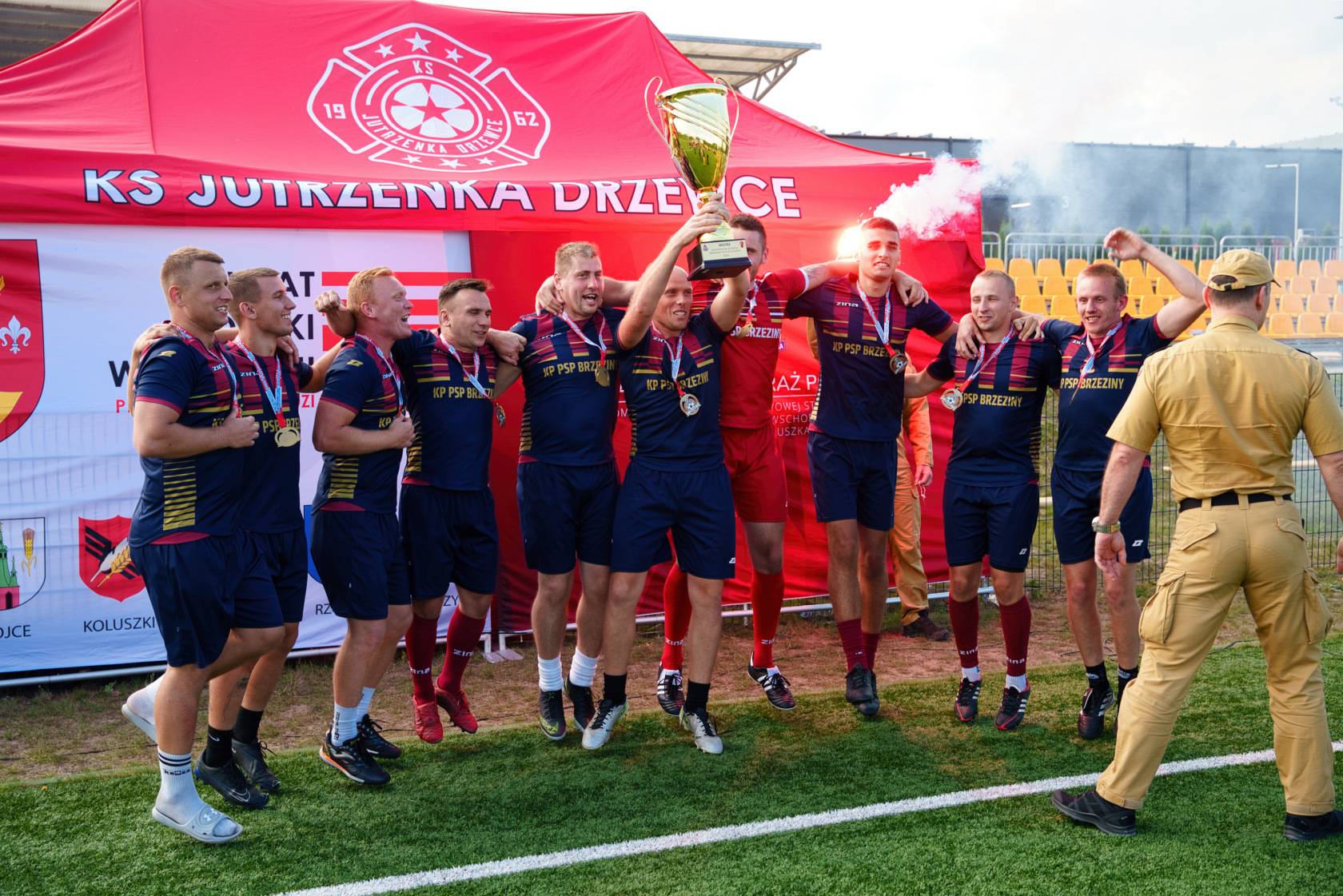​Najlepiej gaszą pożary wśród piłkarzy, a najlepiej grają w piłkę wśród strażaków. Reprezentacja Komendy Powiatowej PSP w Brzezinach sięgnęła po tytuł Mistrzów Województwa Łódzkiego Strażaków PSP w Piłce Nożnej!