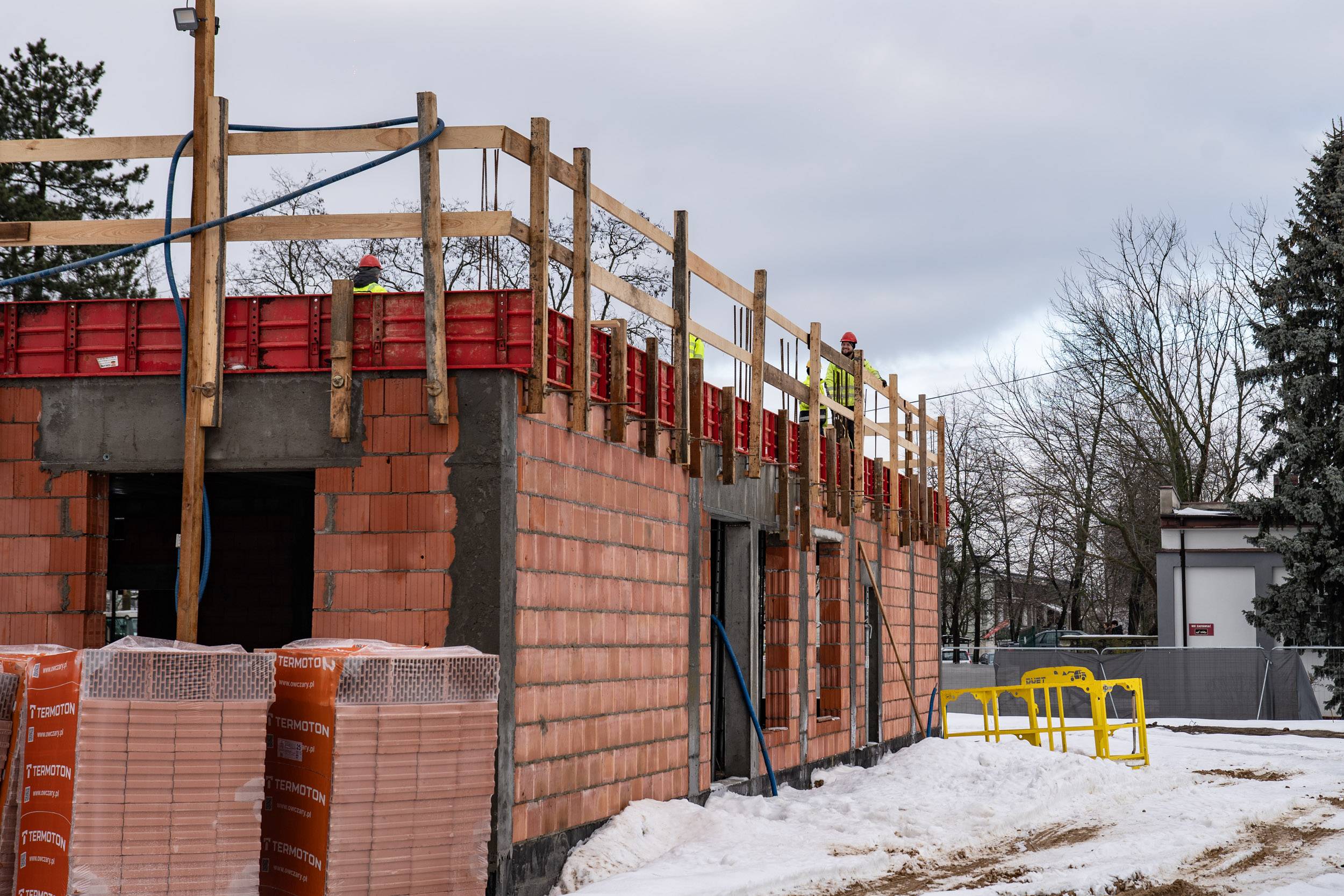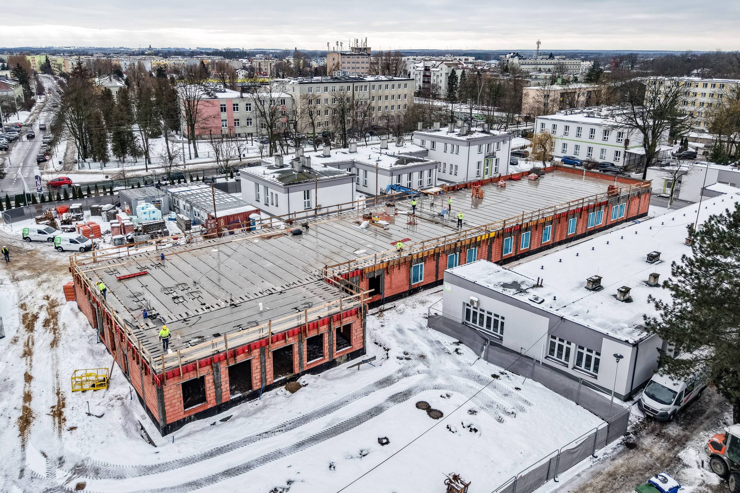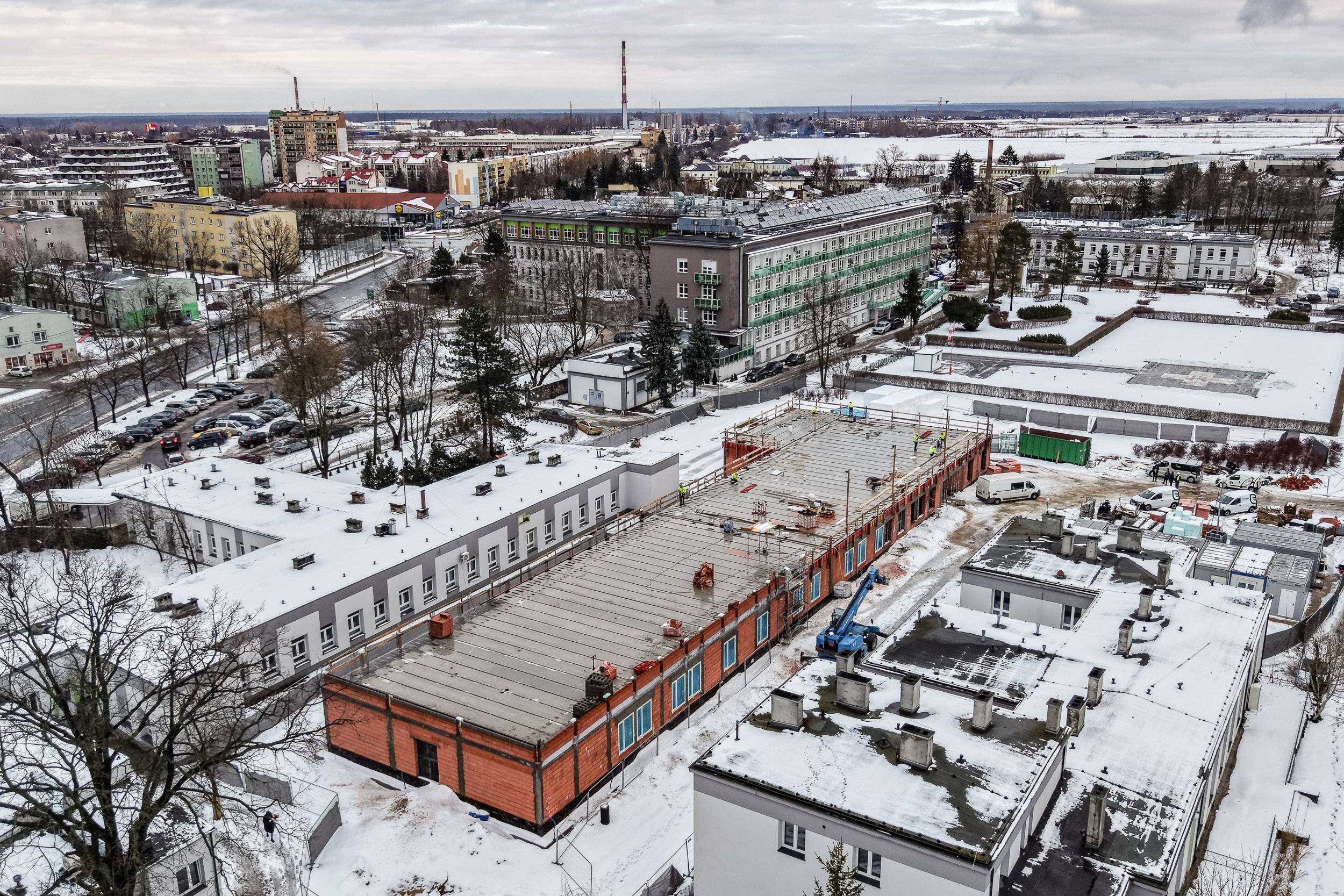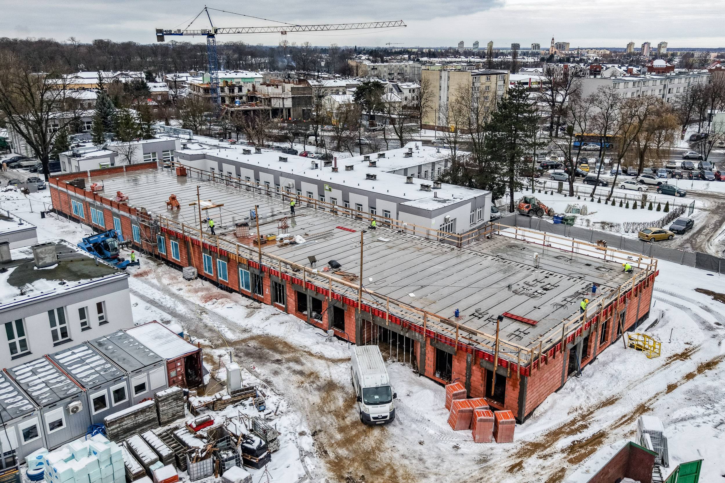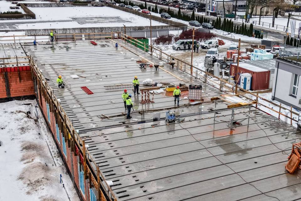 Budowa Zakładu Opiekuńczo-Leczniczego w Skierniewicach postępuje zgodnie z założonym harmonogramem i utrzymuje bardzo dobre tempo realizacji. Inwestycja osiągnęła już stan surowy zamknięty – wykonano strop oraz zakończono wszystkie prace murarskie. Kolejne etapy są realizowane sprawnie, mimo trudniejszych warunków pogodowych.
