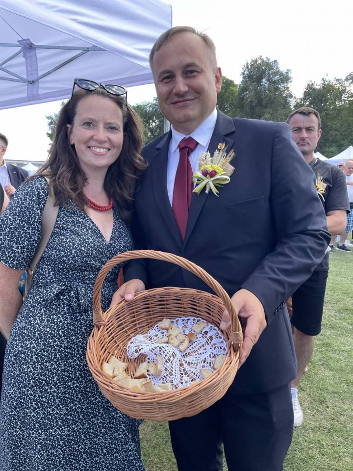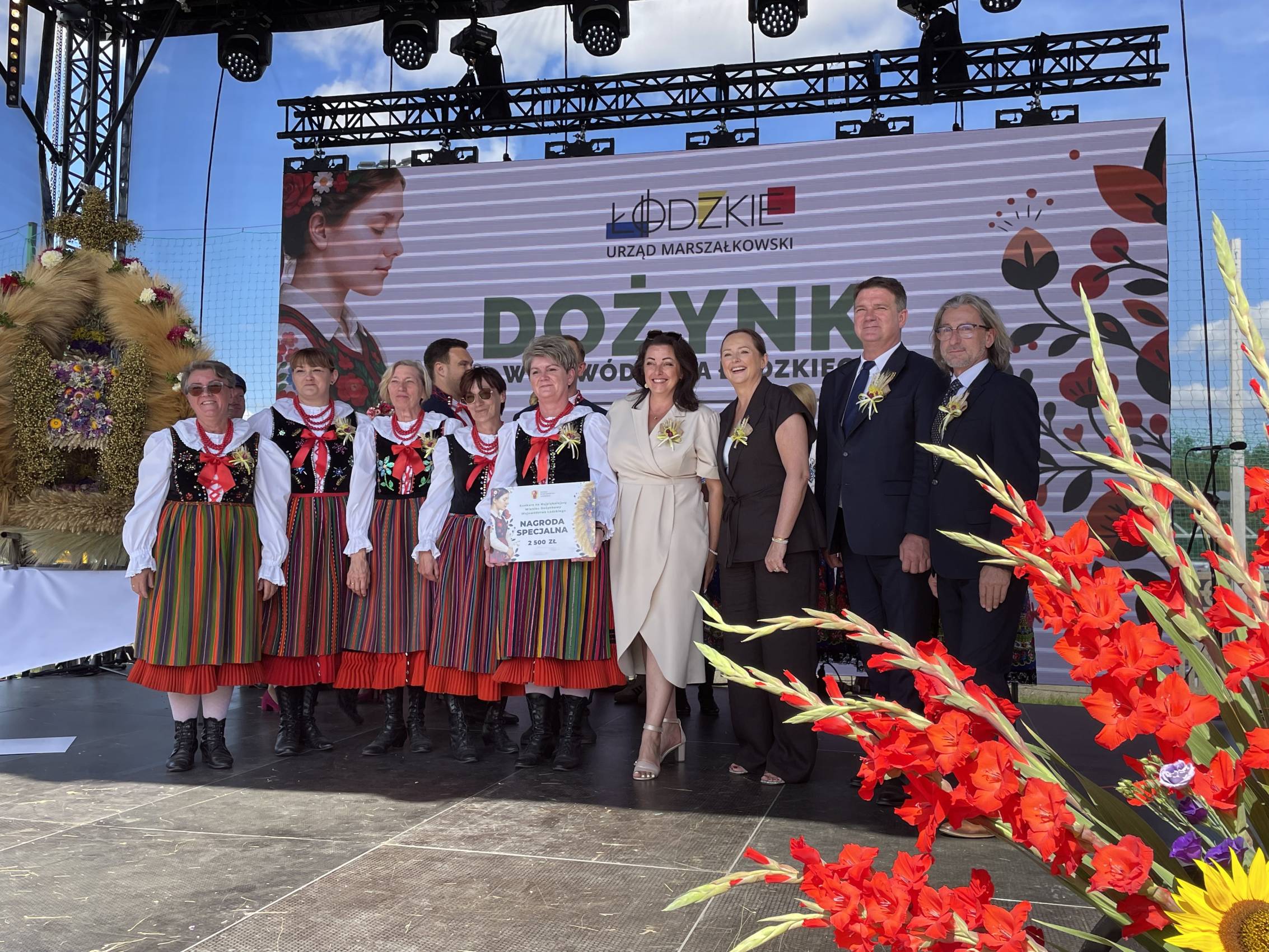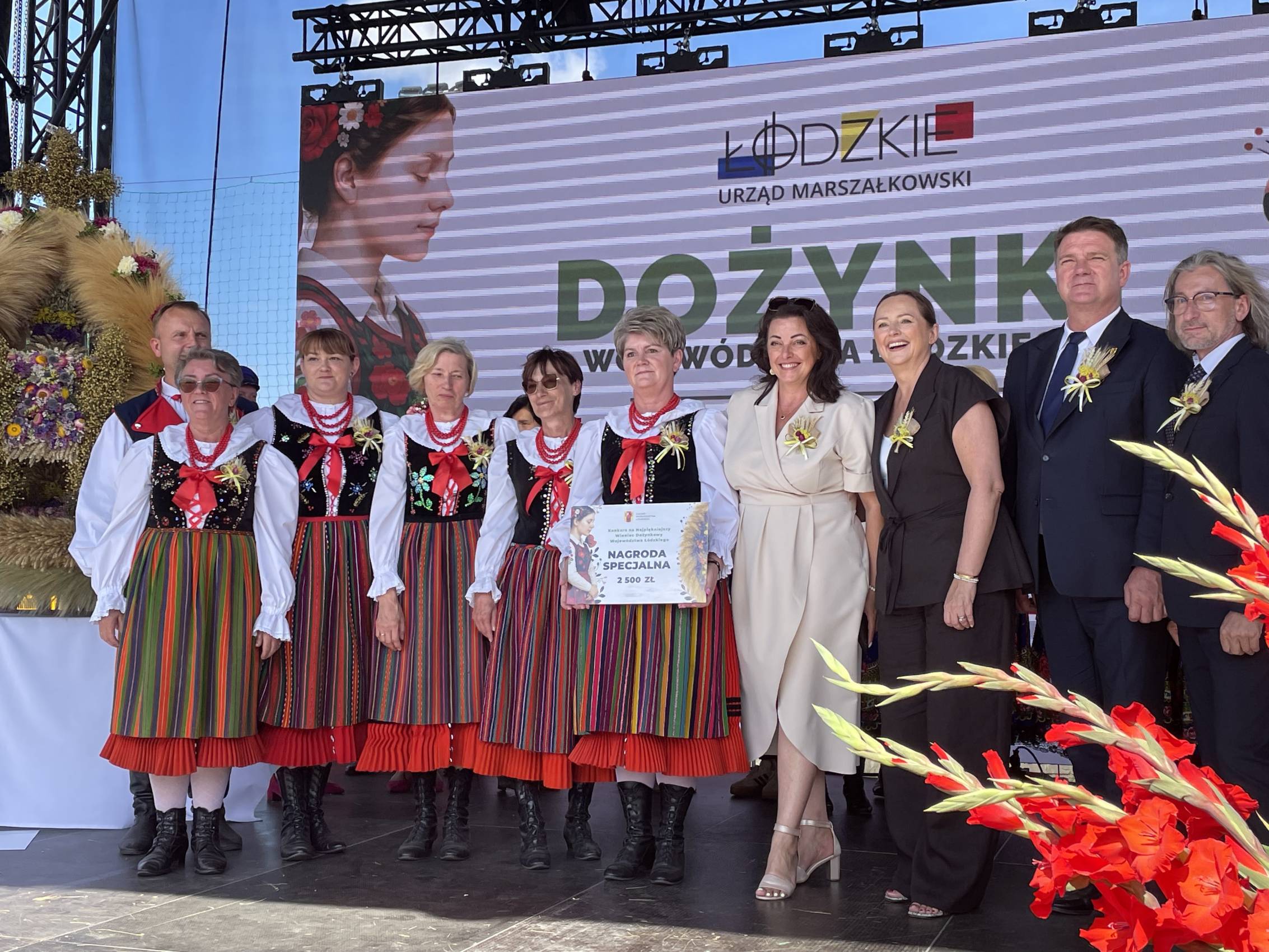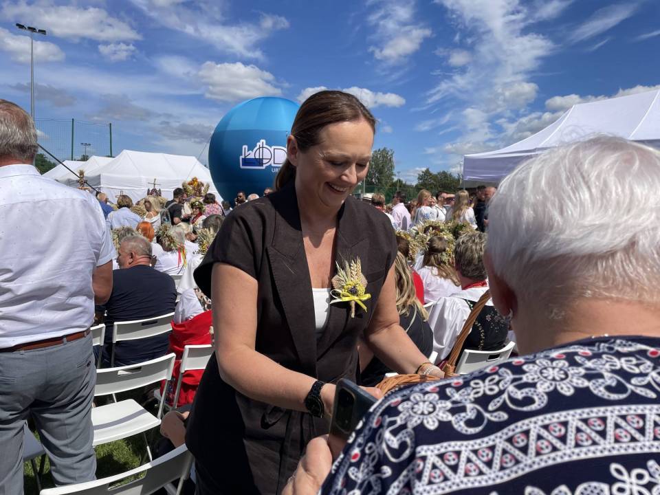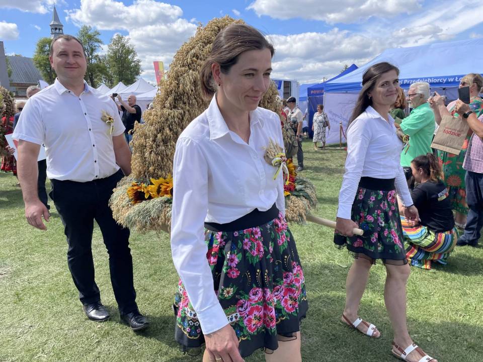 Zapewniła również o wsparciu dla obszarów wiejskich – w tym roku sołectwa z woj. łódzkiego otrzymały rekordowe 40 mln zł m.in. na świetlice i miejsca integracji. Część obrzędową rozpoczął Zespół Śpiewaczy „Sędziejowianki", a następnie starostowie dożynek – Agnieszka Węglewska i Paweł Michalak – przekazali na ręce marszałek bochen chleba upieczony z tegorocznych zbóż.