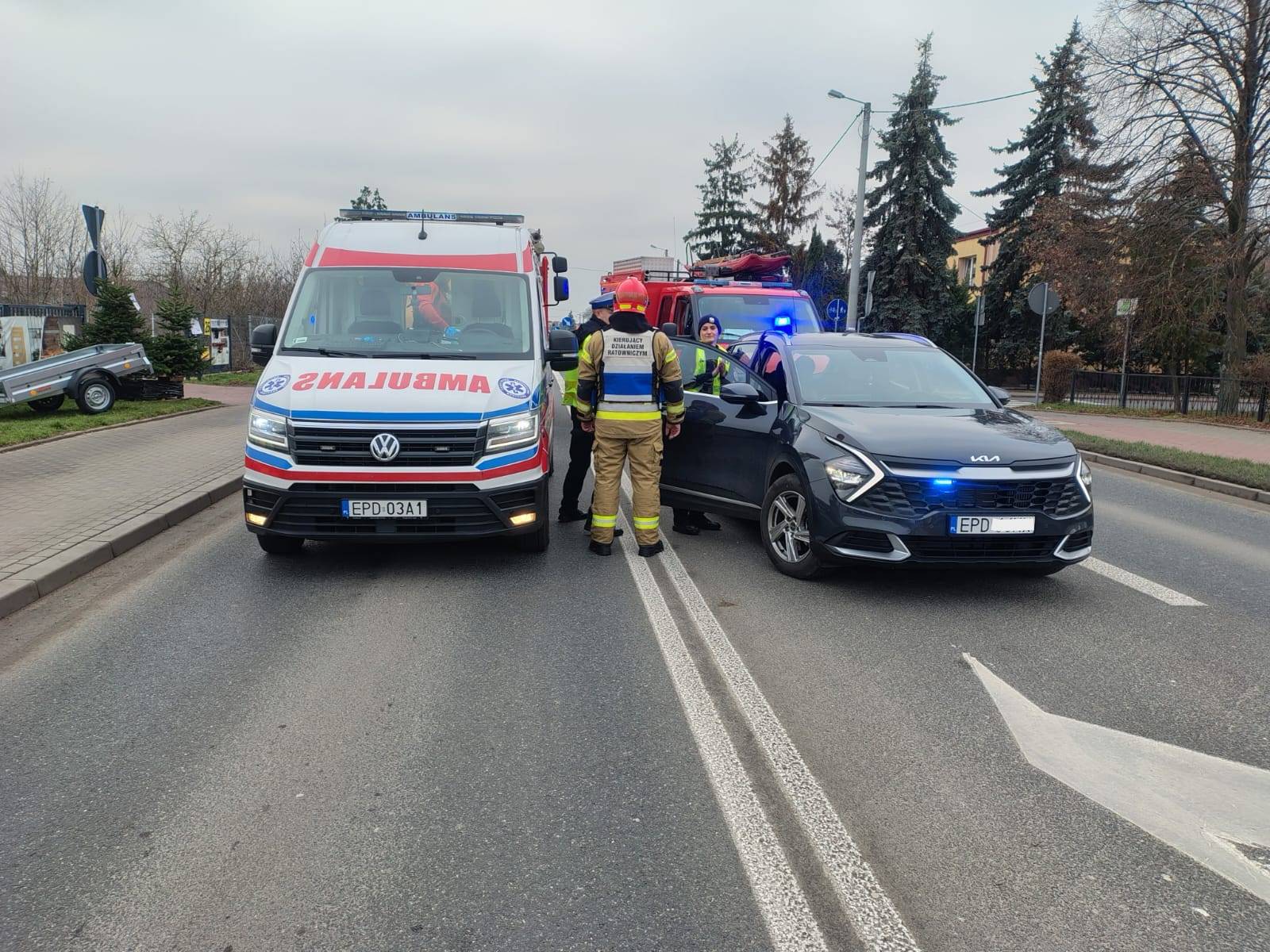 W działaniach udział brali strażacy z Jednostki Ratowniczo-Gaśniczej w Poddębicach, którzy na miejsce zdarzenia zadysponowali dwa wozy bojowe. Na miejscu pracowali również ratownicy medyczni oraz funkcjonariusze policji z Poddębic, którzy prowadzą czynności mające na celu ustalenie dokładnych okoliczności wypadku.