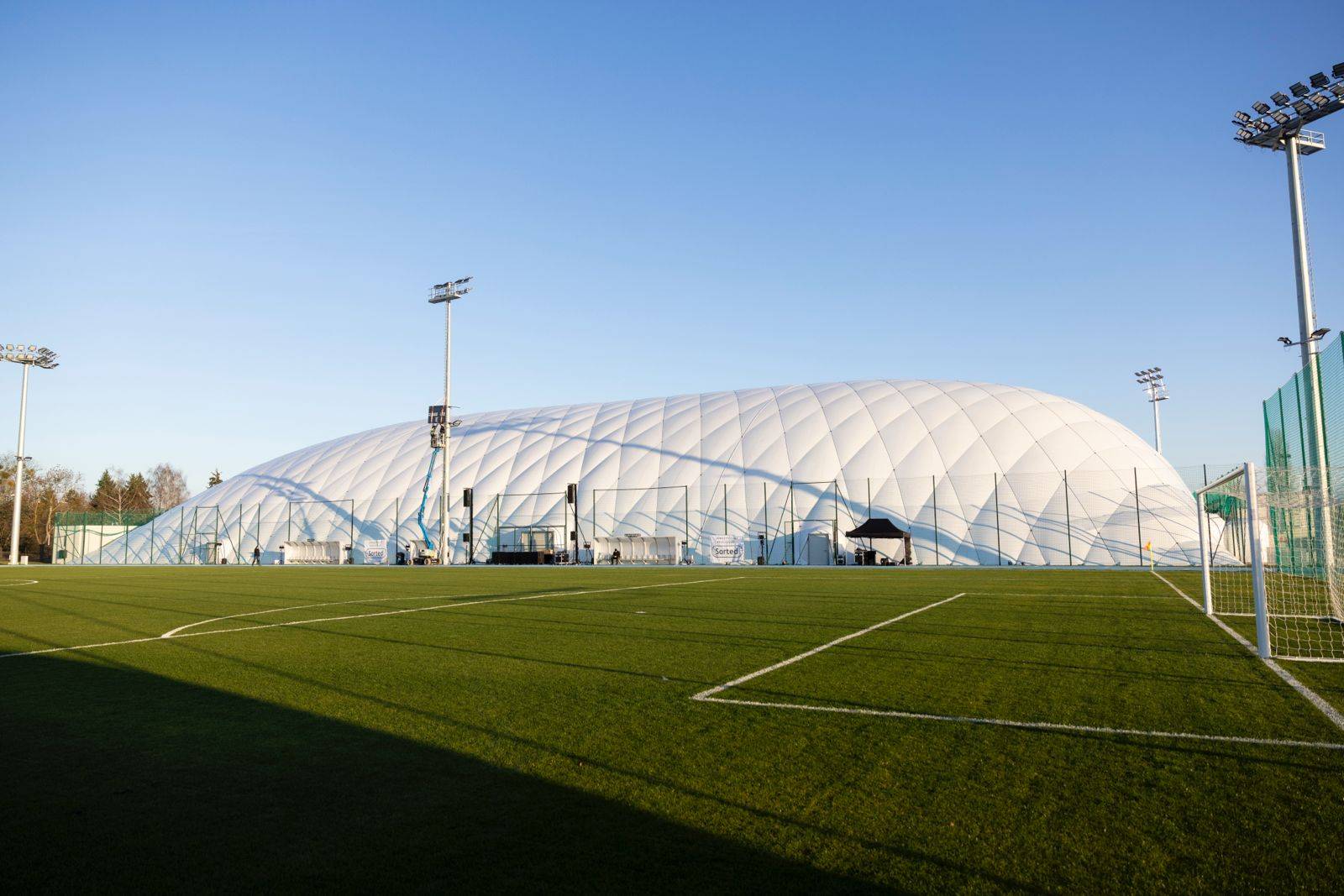 Jedną z najważniejszych nowości jest pełnowymiarowe boisko treningowe z trybuną na 300 miejsc. Już tej zimy przykryje je ogromny balon pneumatyczny, który wyróżnia się z miejskiego krajobrazu i jest widoczny z ul. Żwirki. Dzięki temu piłkarze i młodzież będą mogli trenować niezależnie od warunków pogodowych.
