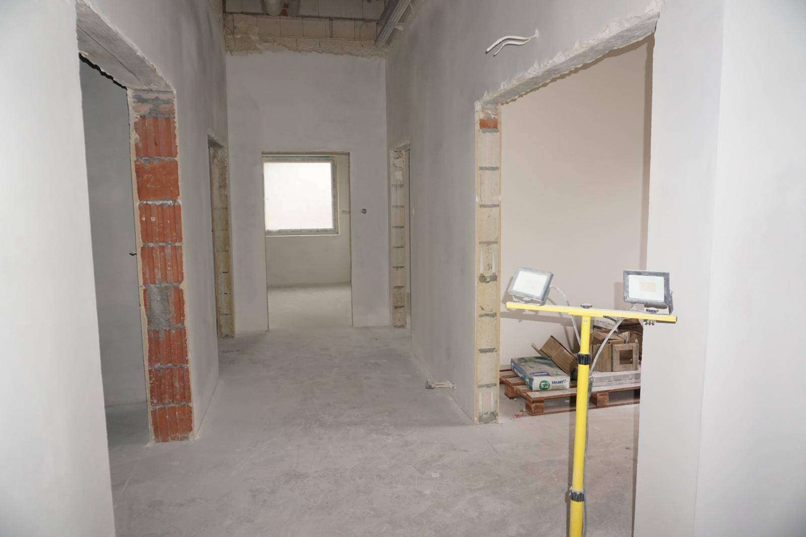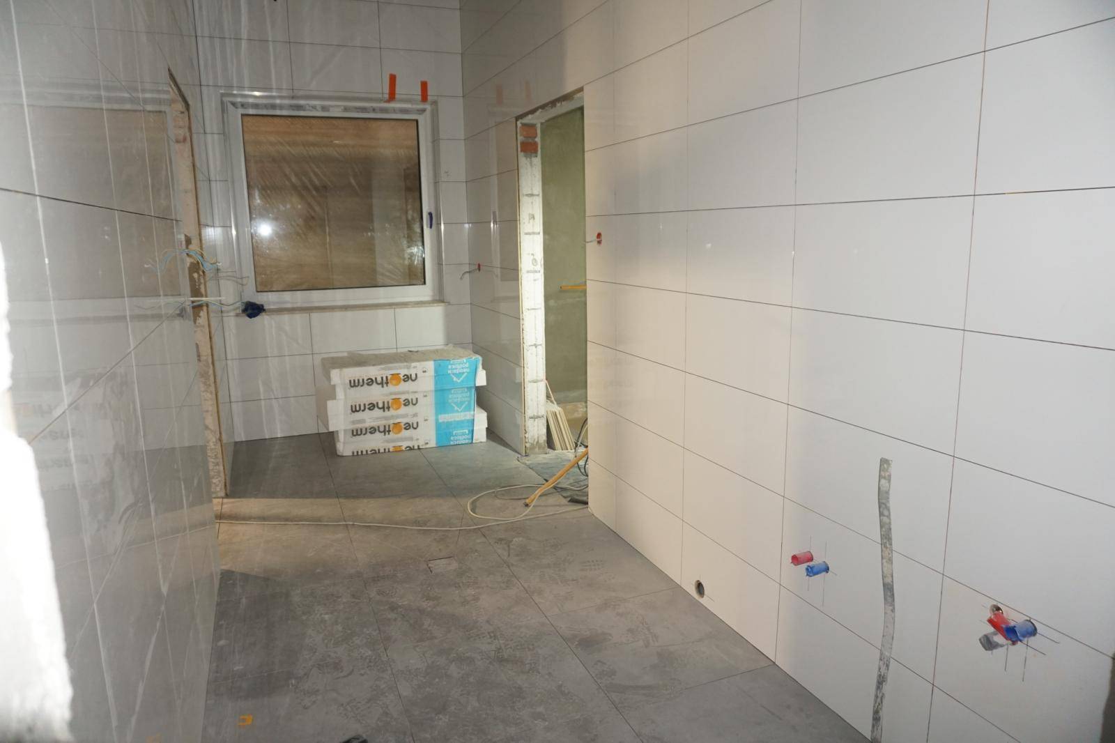 W nowopowstającym budynku wykonano już instalacje wodno-kanalizacyjne, elektryczne oraz system wentylacji mechanicznej. Obecnie trwają intensywne prace wykończeniowe — układane są płytki ścienne i podłogowe, a także prowadzone są roboty elewacyjne. Rozpoczęto również przygotowania do montażu armatury sanitarnej oraz wyposażenia łazienek i pomieszczeń gospodarczych.