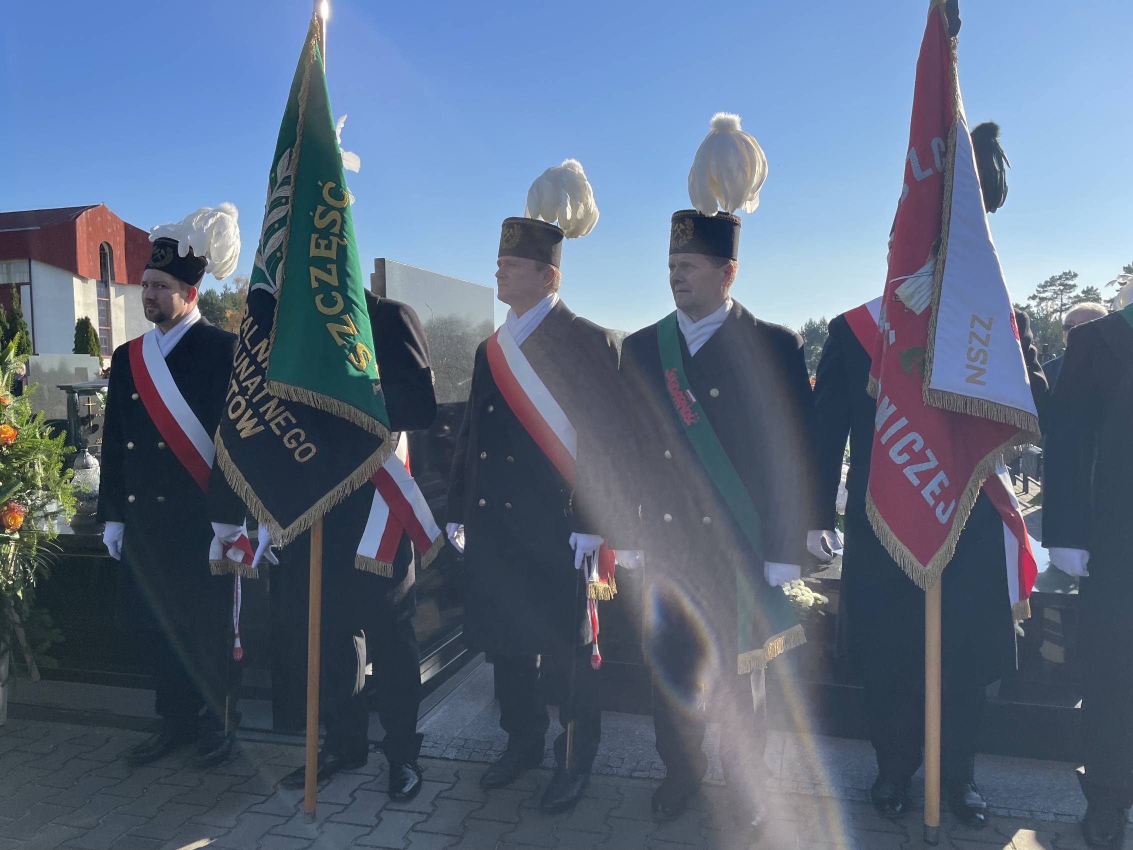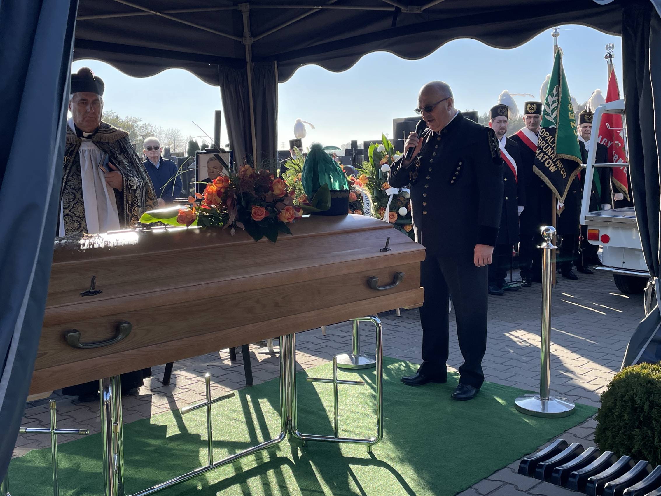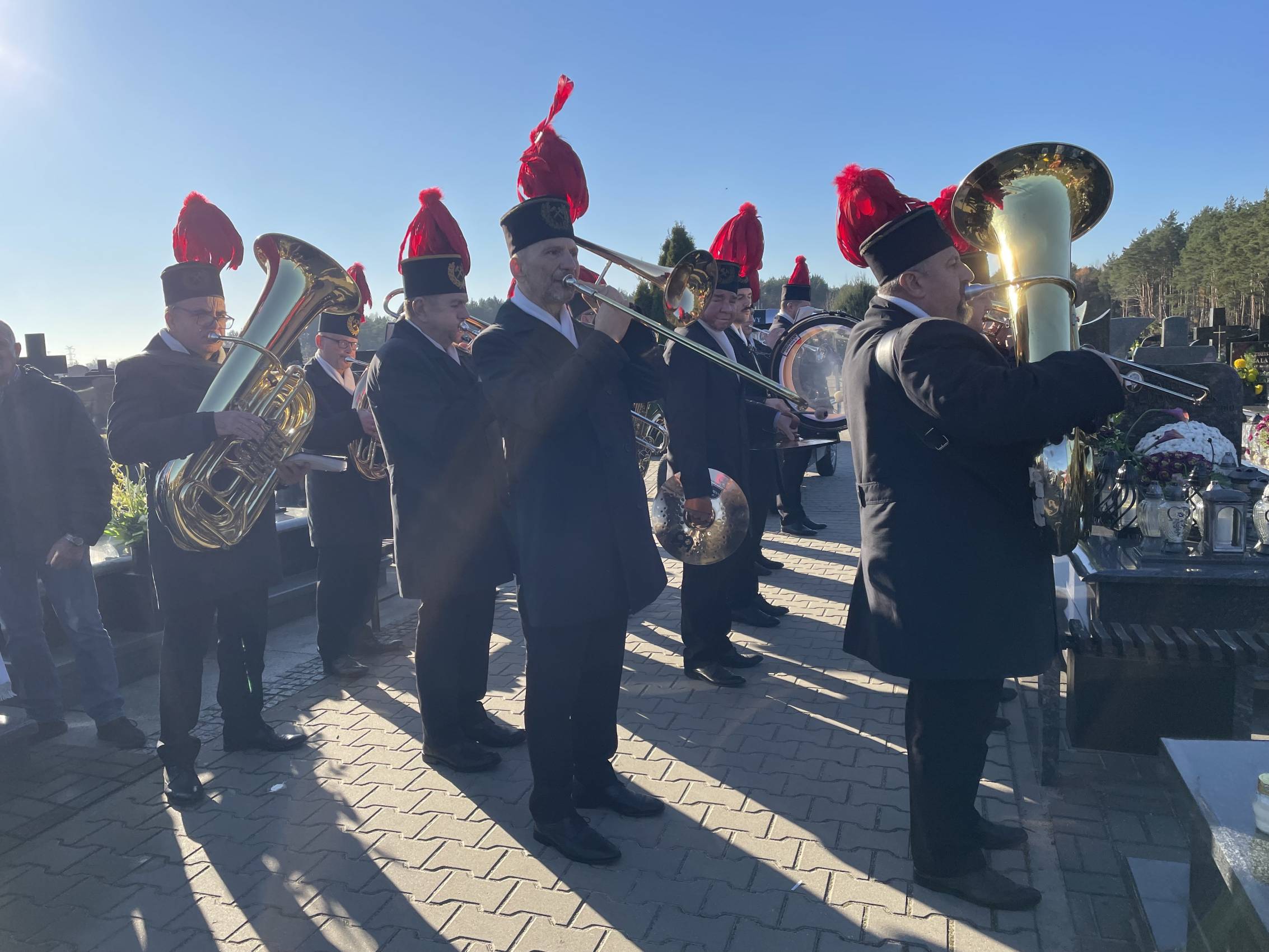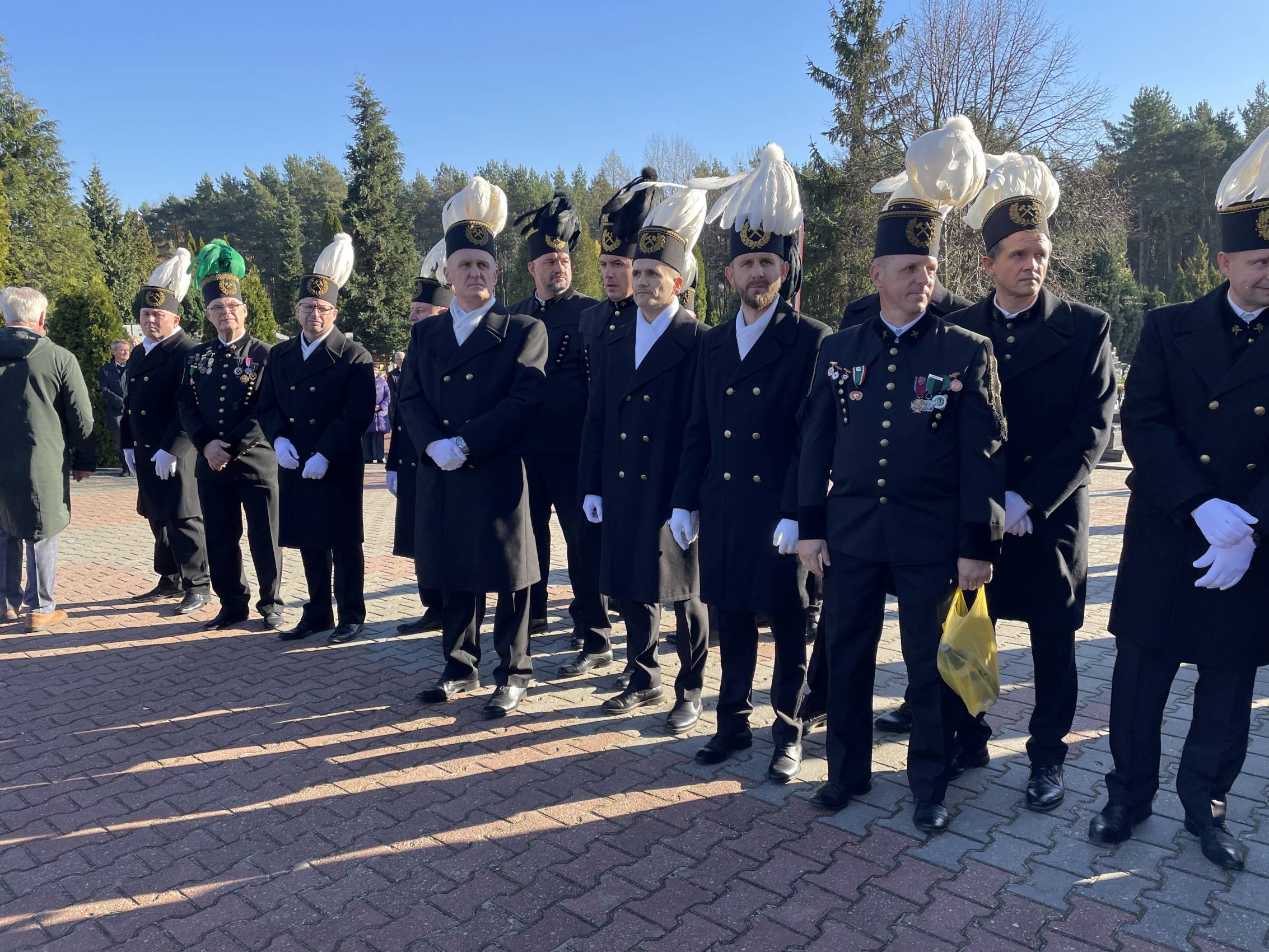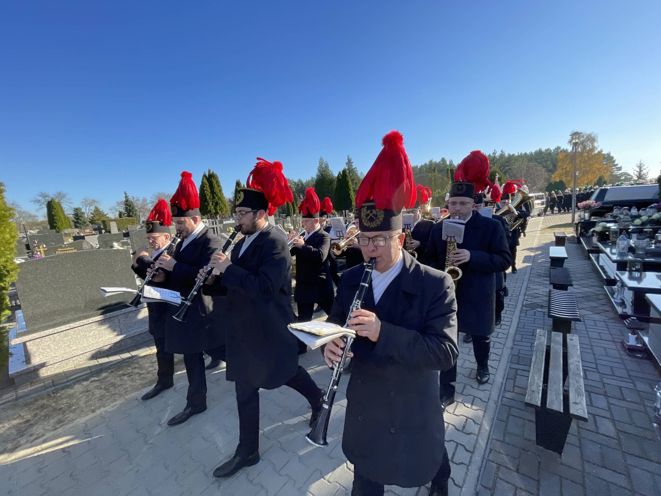 W ostatniej drodze towarzyszyła mu orkiestra górnicza, poczty sztandarowe i morze czarnych mundurów z zielonymi, białymi i czarnymi pióropuszami czako.