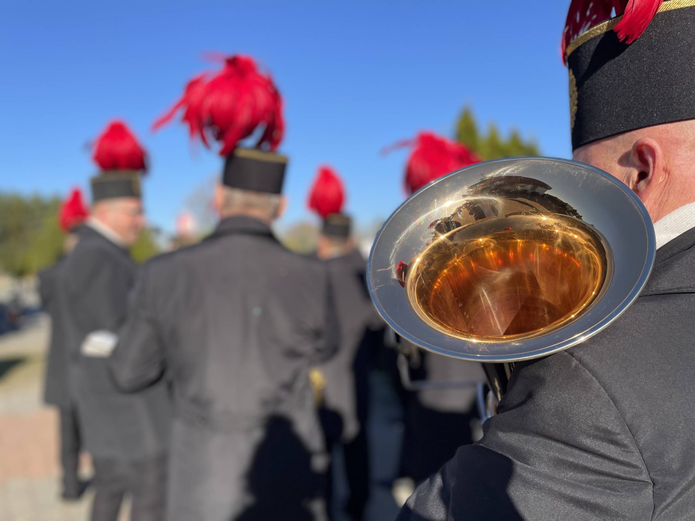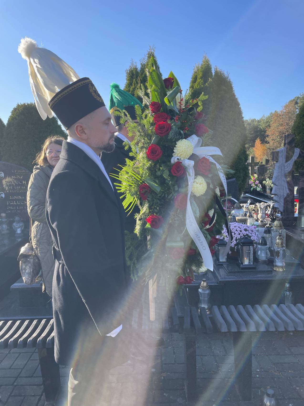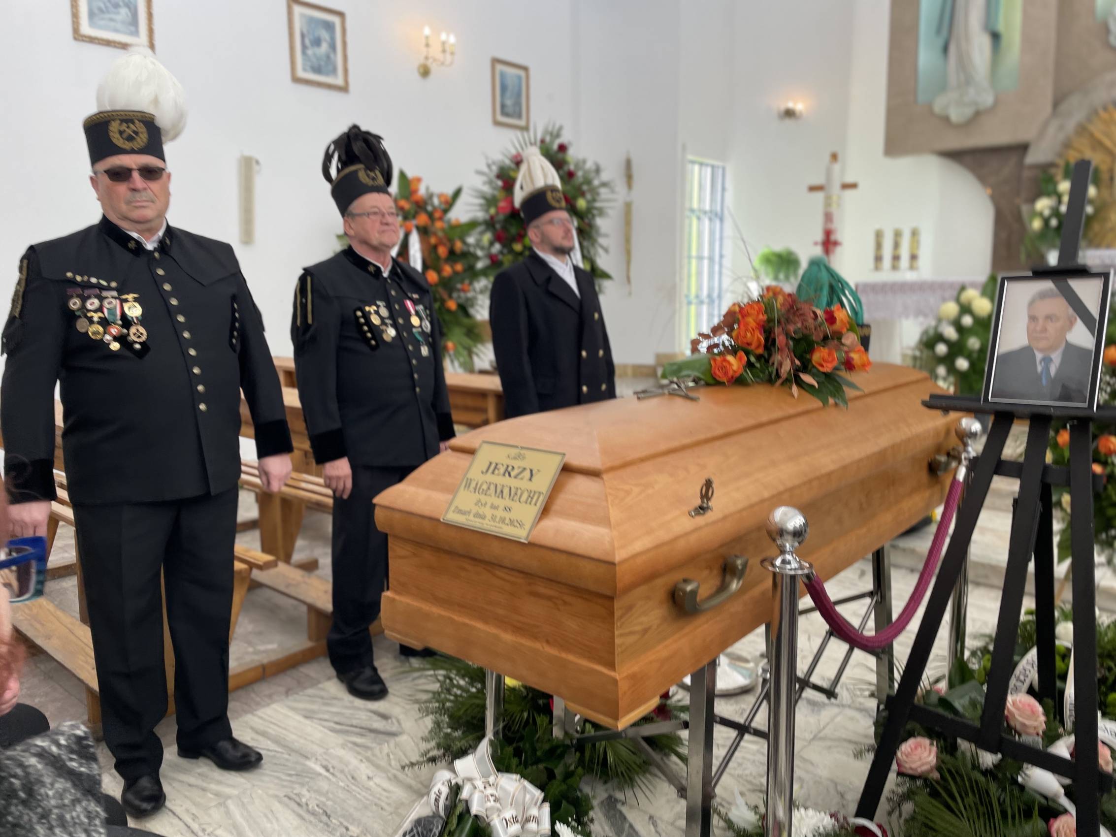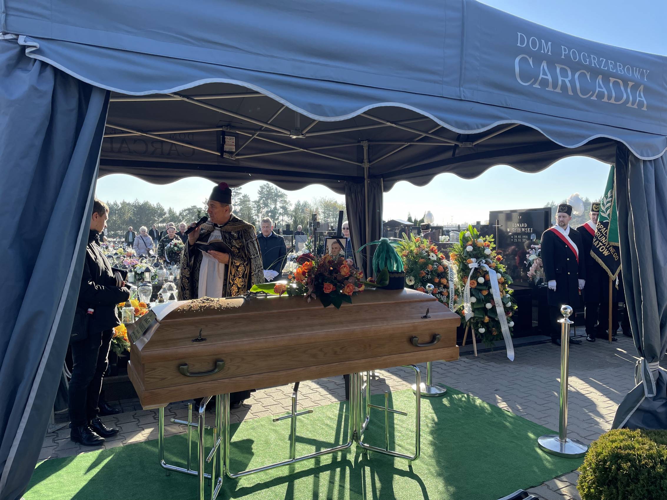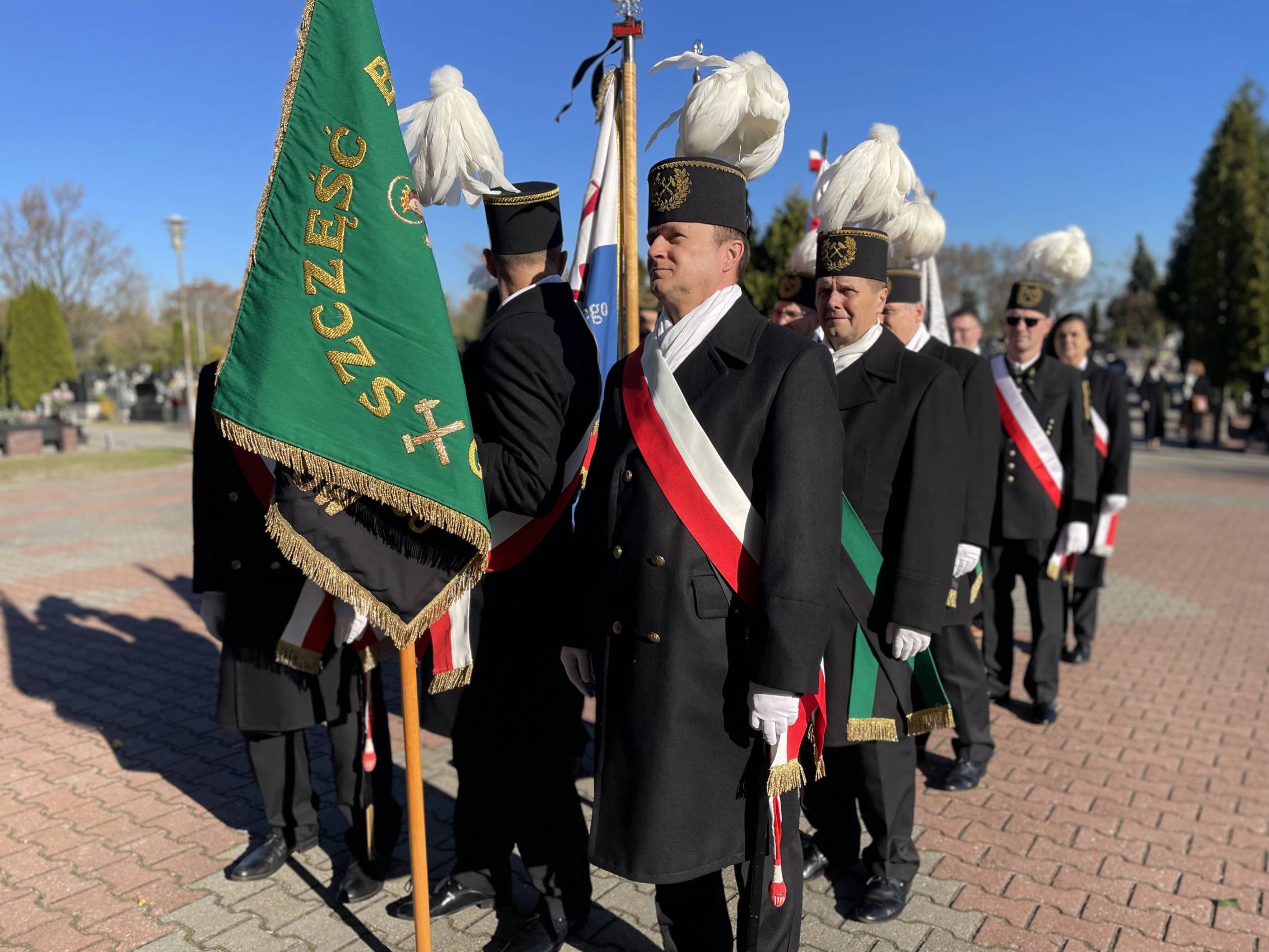 W ostatniej drodze towarzyszyła mu orkiestra górnicza, poczty sztandarowe i morze czarnych mundurów z zielonymi, białymi i czarnymi pióropuszami czako.