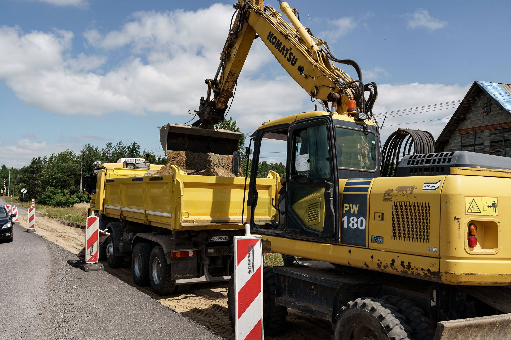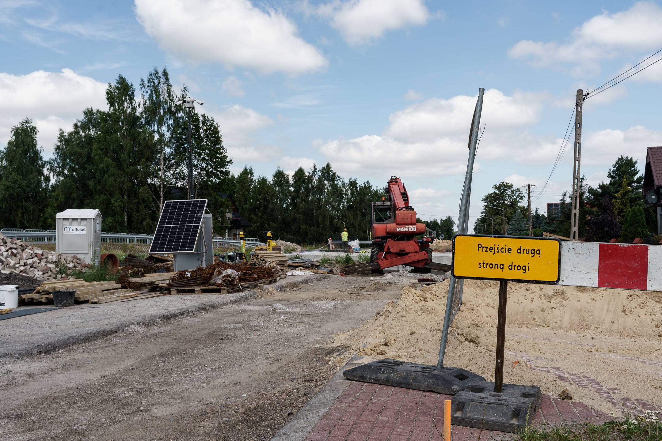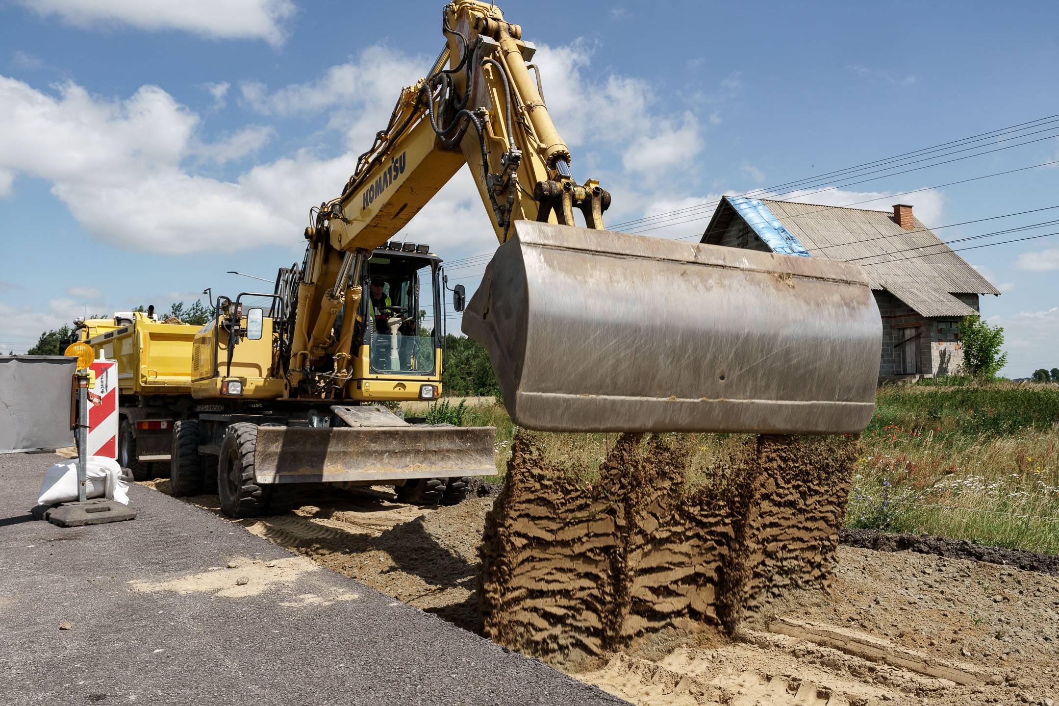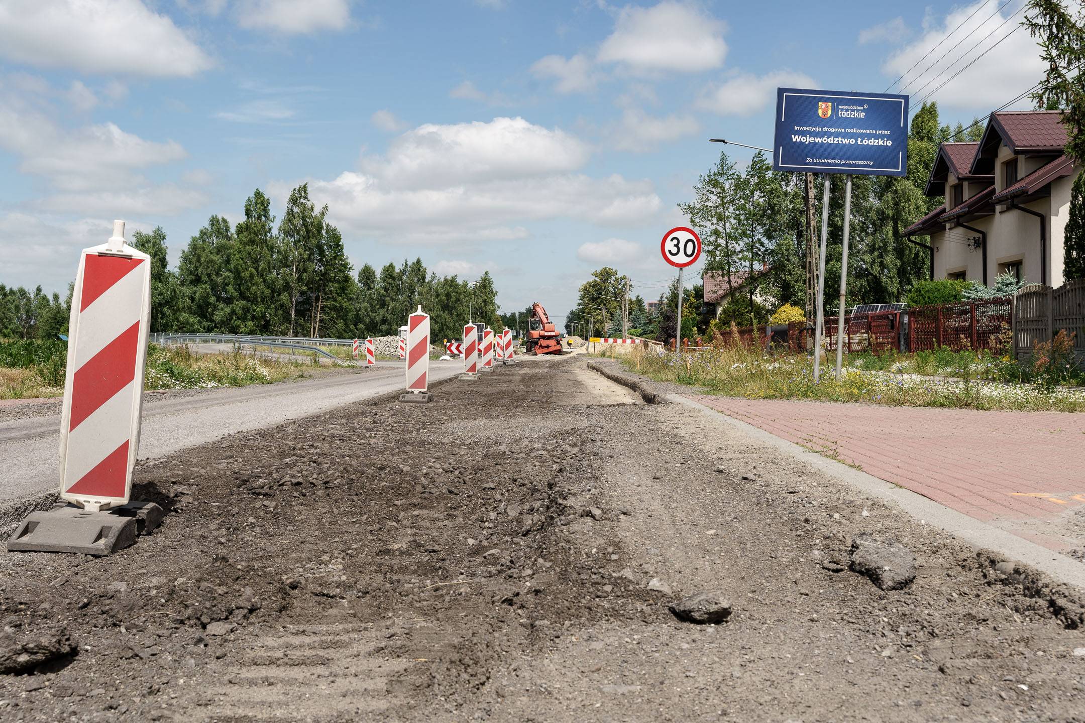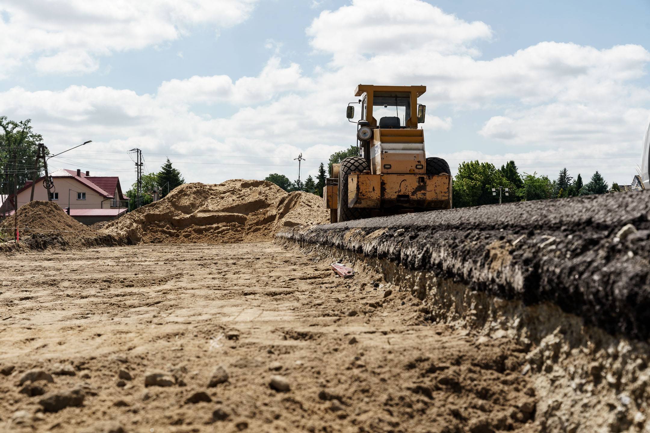W części drogowej inwestycji prowadzone jest m.in. korytowanie pod nową konstrukcję drogi na drugiej połówce jezdni. Pierwsza połówka jest już gotowa, przed drogowcami położenie warstwy wiążącej asfaltu.