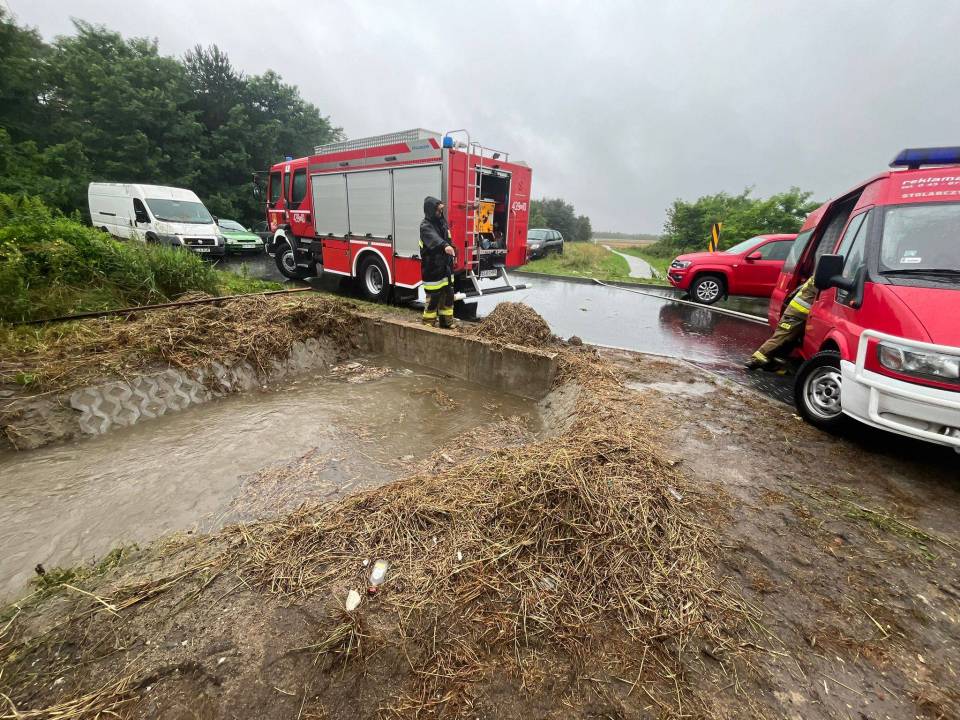 W wyniku nagłego załamania pogody, strażacy zostali wezwani do 14 interwencji związanych z wypompowywaniem wody z zalanych posesji i budynków. Opady były na tyle intensywne, że lokalna kanalizacja deszczowa nie była w stanie odprowadzić nadmiaru wody, co skutkowało podtopieniami w wielu rejonach gminy. Zdarzenia te dotyczyły zarówno budynków mieszkalnych, jak i obiektów gospodarczych.