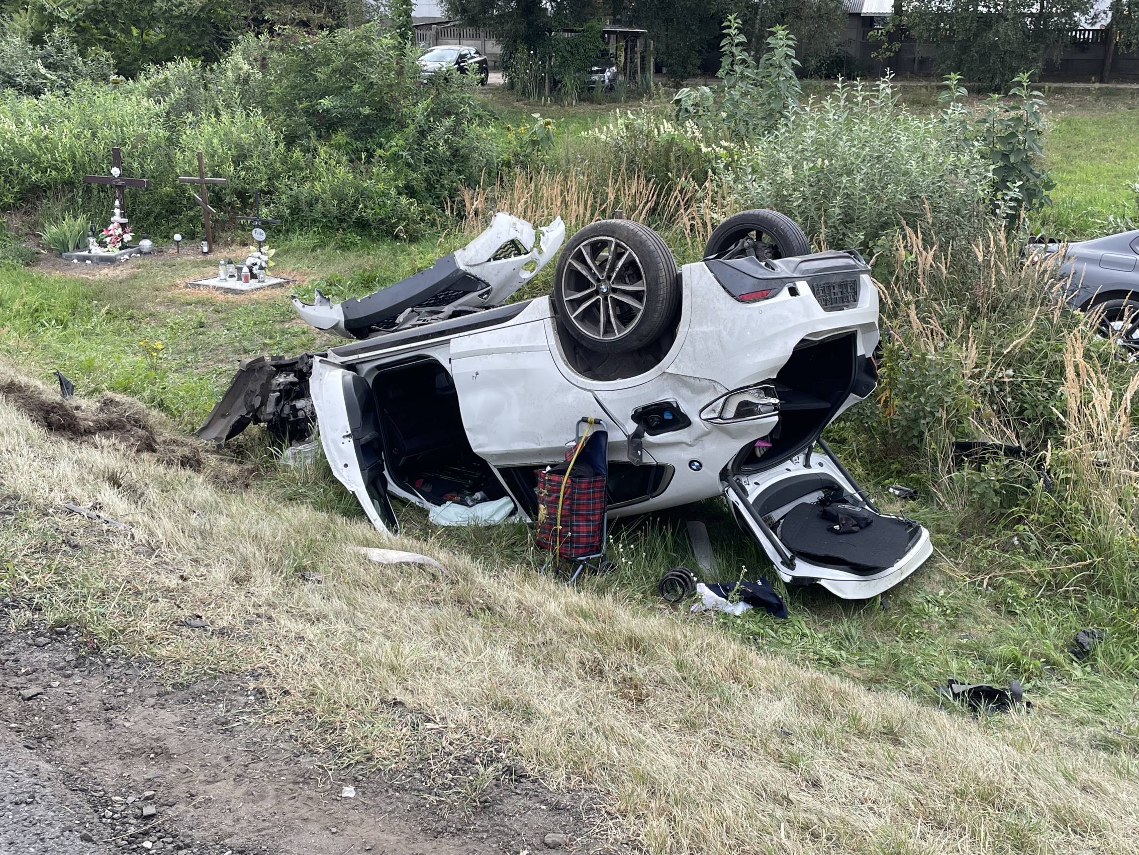 Ze wstępnych ustaleń policji wynika, że kierująca BMW X2, 42-letnia kobieta jadąca drogą wojewódzką nr 480, nie zastosowała się do znaku "STOP" i nie ustąpiła pierwszeństwa przejazdu prawidłowo jadącemu drogą krajową 48-latkowi, kierującemu BMW serii 3. Siła zderzenia obu pojazdów była na tyle duża, że oba auta wypadły z drogi i spadły ze skarpy i finalnie jedno z nich dachowało.