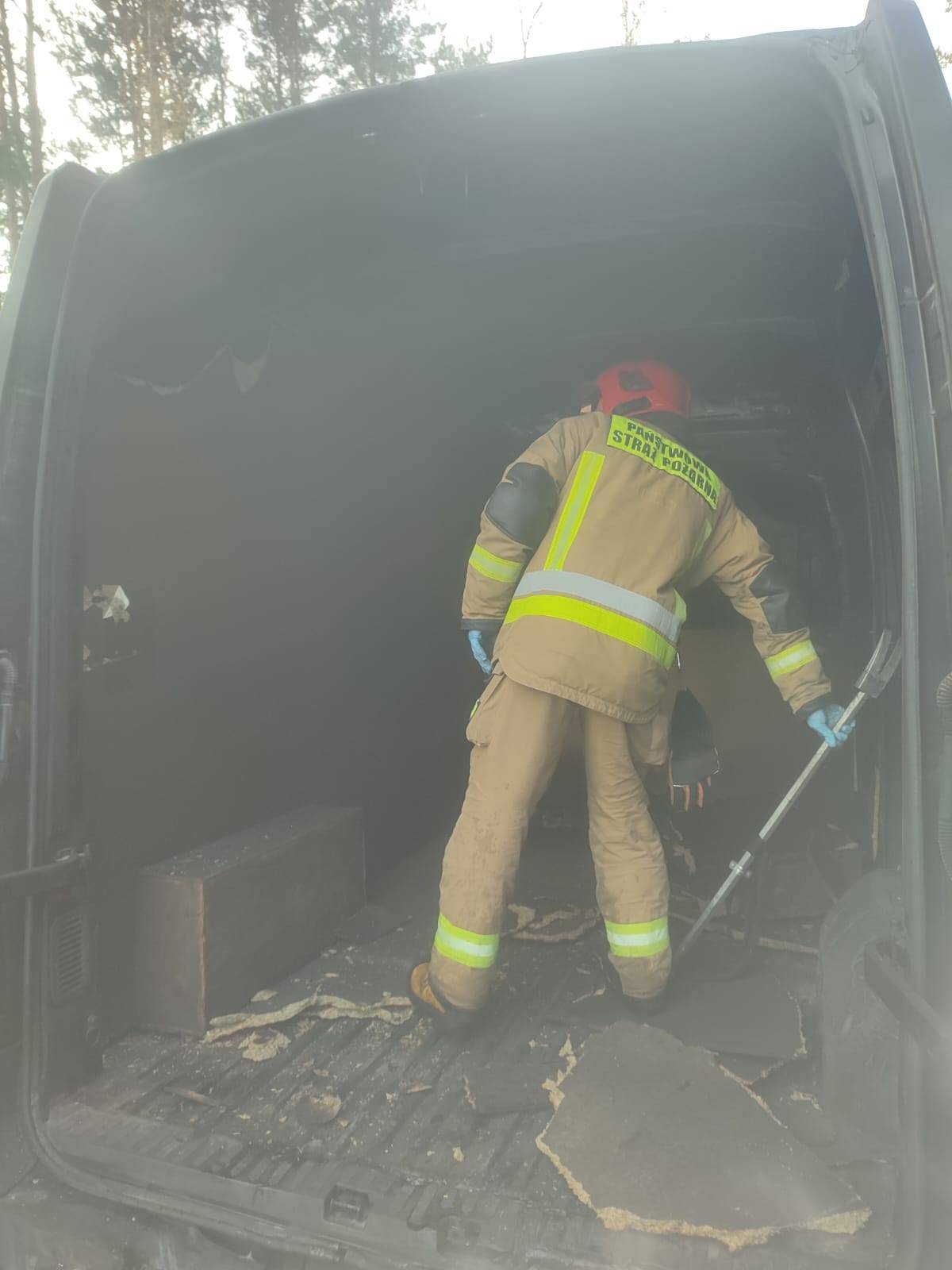 Po przybyciu na miejsce zdarzenia strażacy zastali całkowicie objęty ogniem pojazd kurierski. Szczęśliwie w "dostawczaku" w momencie wybuchu pożaru nie był przewożony żaden ładunek. Działania polegały na zabezpieczeniu terenu, ugaszeniu pożaru oraz dogaszeniu nadpalonych elementów busa. Pomimo szybkiej reakcji służb, pojazd spłonął doszczętnie. Droga w rejonie zdarzenia była chwilowo utrudniona na czas działań gaśniczych.