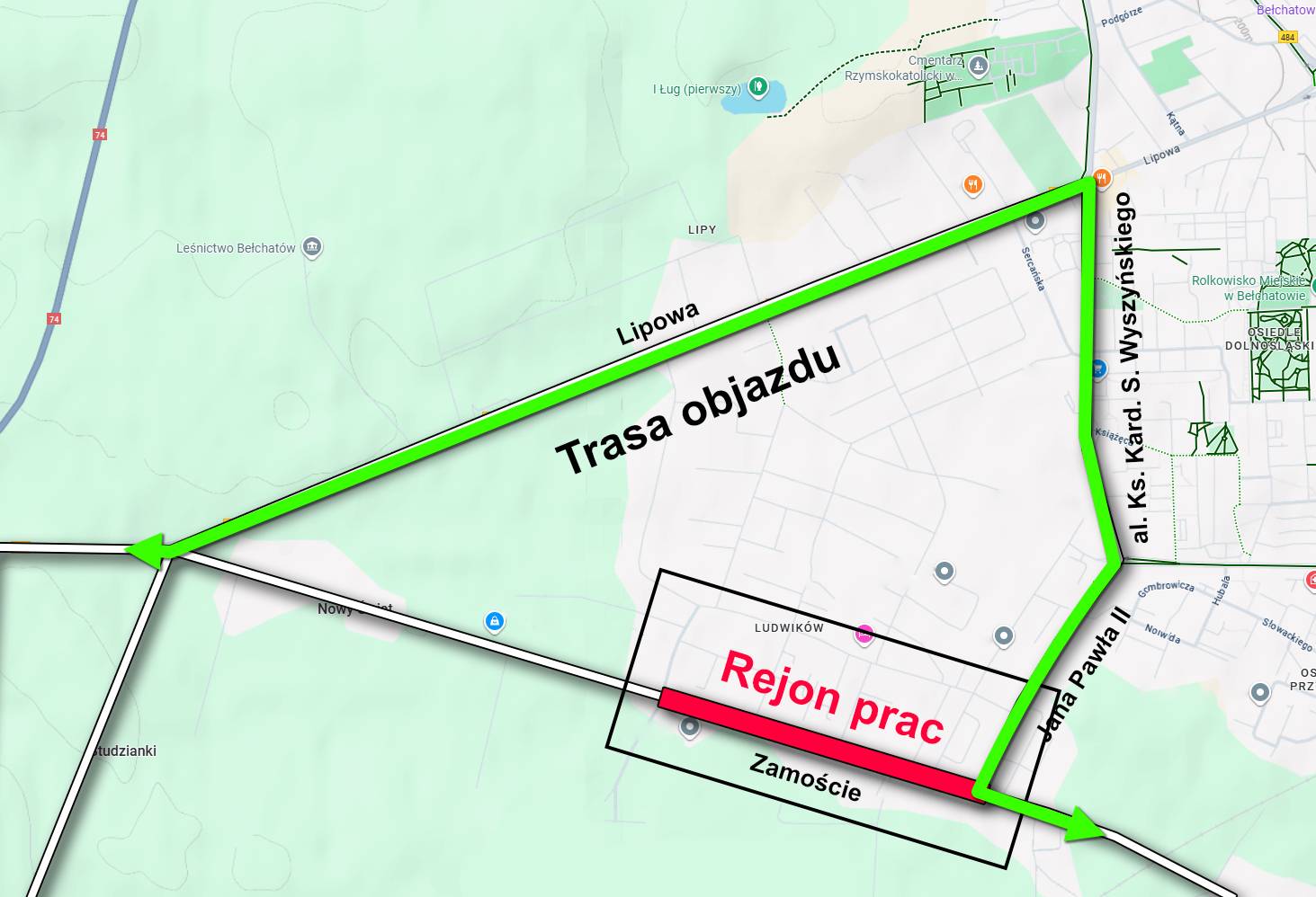 W związku z tym pozostałych kierowców obowiązywał będzie objazd drogą wojewódzką DW 476, al. Księdza Kardynała Stefana Wyszyńskiego i al. Jana Pawła II do Lipowej. Ten zaprojektowano dla obu kierunków. Bezsprzecznie kierowcy będą musieli stosować się o nowej organizacji ruchu i poruszać godnie z wprowadzonym oznakowaniem. Prosimy o ostrożną jazdę. W rejonie prac obowiązywać będzie dopuszczalna prędkość do 30 km/h.