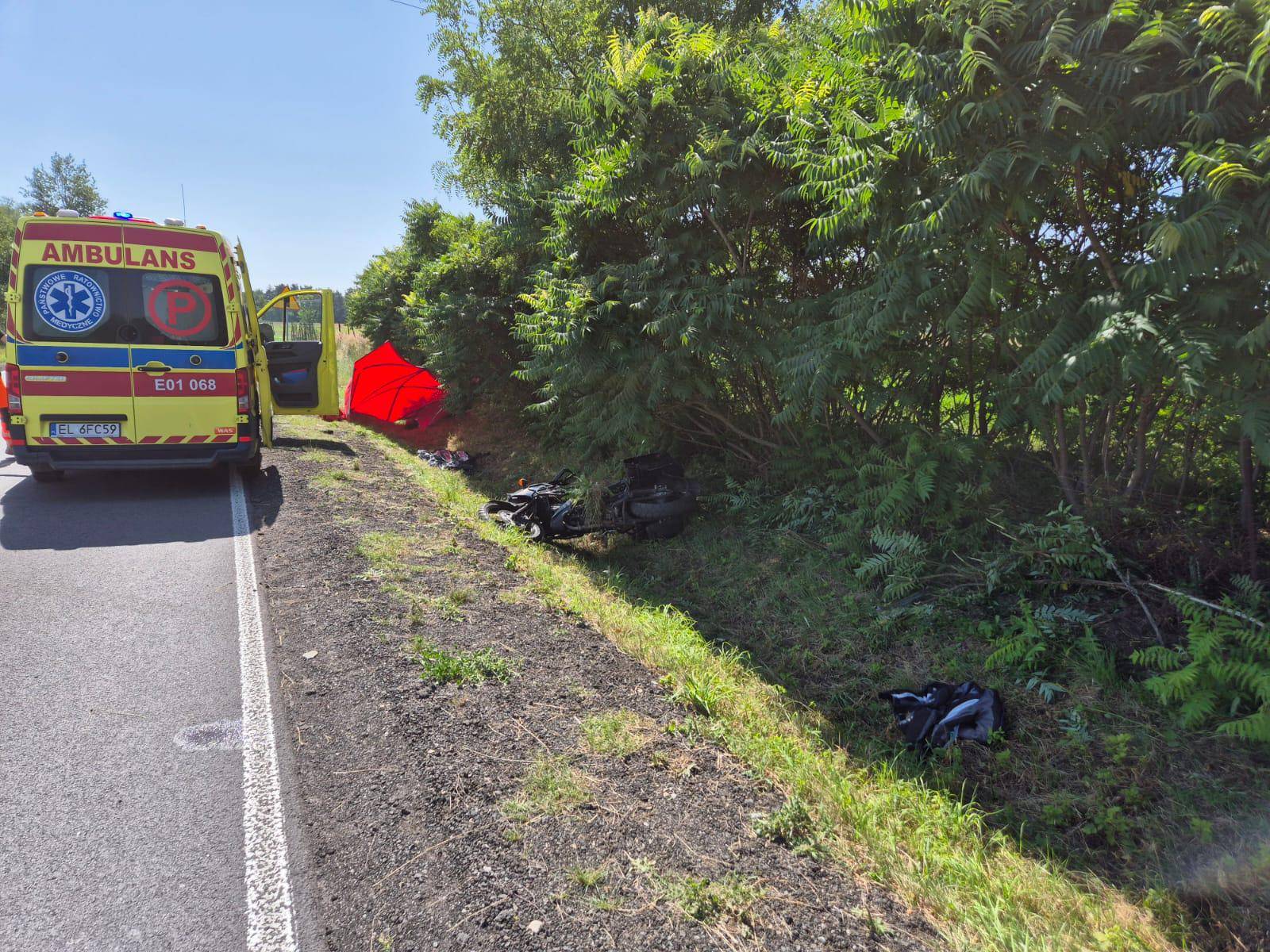 Do tragicznego w skutkach wypadku doszło dziś około godziny 12:30 na drodze wojewódzkiej nr 702 w gminie Piątek. W miejscowości Sypin, według wstępnych ustaleń, motocyklista podczas manewru wyprzedzania stracił panowanie nad pojazdem i zderzył się z ciężarówką.