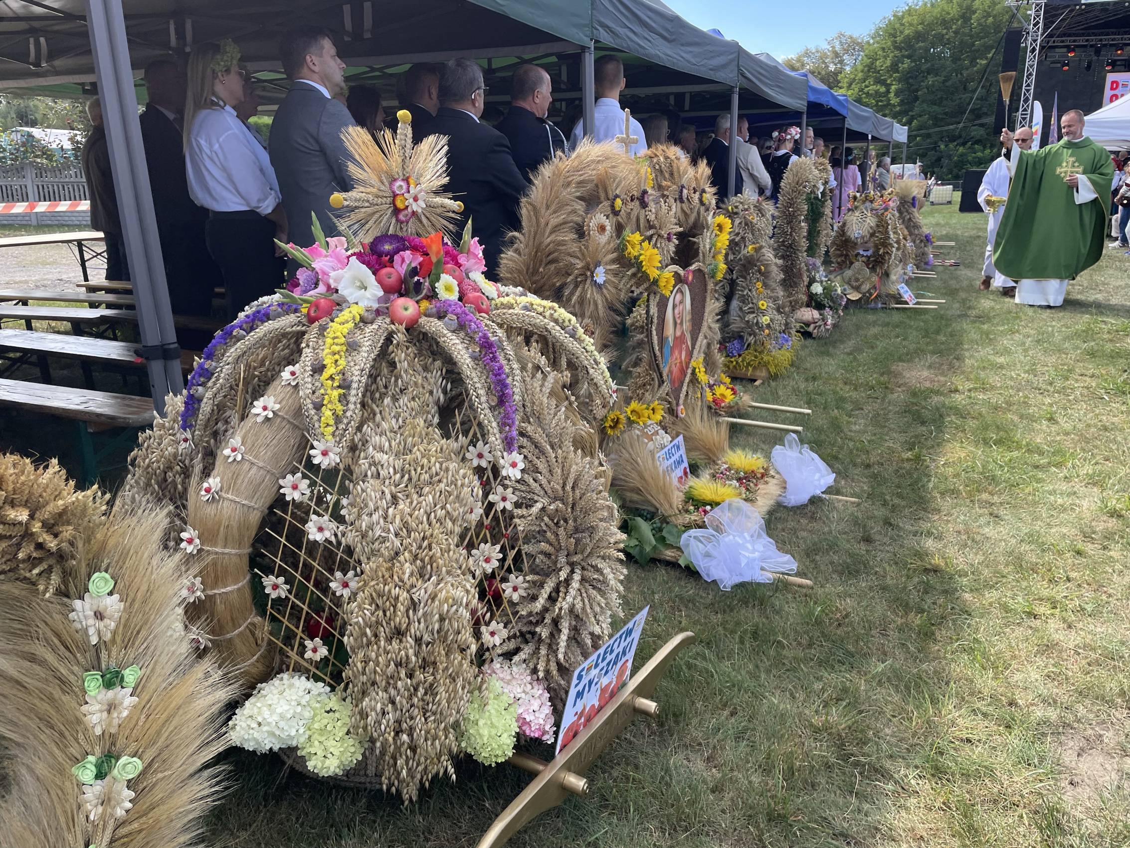 Tegoroczne obchody rozpoczęły się uroczystą mszą świętą o godzinie 14:00. Po niej nadszedł czas na część oficjalną, podczas której tradycyjnie przekazano wieńce dożynkowe – symbole wdzięczności za tegoroczne plony. Nie zabrakło również momentów wzruszenia – uhonorowano rolników oraz osoby zaangażowane w życie i rozwój lokalnych społeczności.