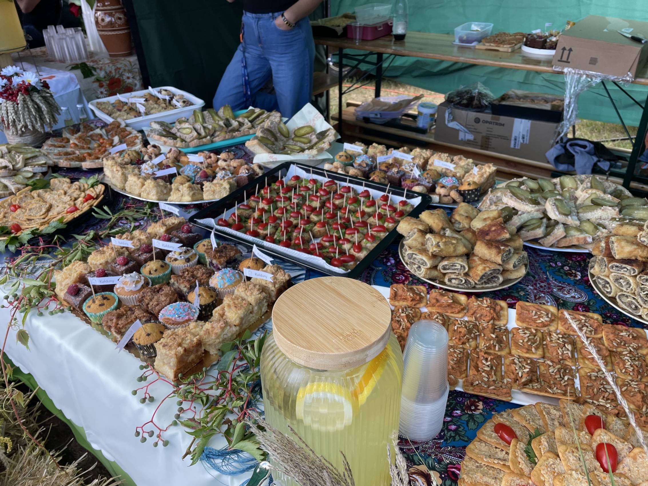 Jednak dożynki to nie tylko piękne tradycje, ale i doskonała okazja do świętowania w bardziej nieformalnej atmosferze. Na gości czekało aż 17 stoisk z lokalnymi przysmakami, przygotowanymi przez koła gospodyń wiejskich. Aromaty domowych ciast, regionalnych potraw i rozmaitych przekąsek przyciągały tłumy. Swoje kulinarne umiejętności zaprezentowały m.in. panie z KGW w Oleśniku, Porębach, Bukowej, Dobrzelowie, Kałdunach, Janowie, Korczewie, Wólce Łękawskiej czy Zdzieszulicach Dolnych. Stoły uginały się od smakowitości, a każdy mógł znaleźć coś dla siebie.