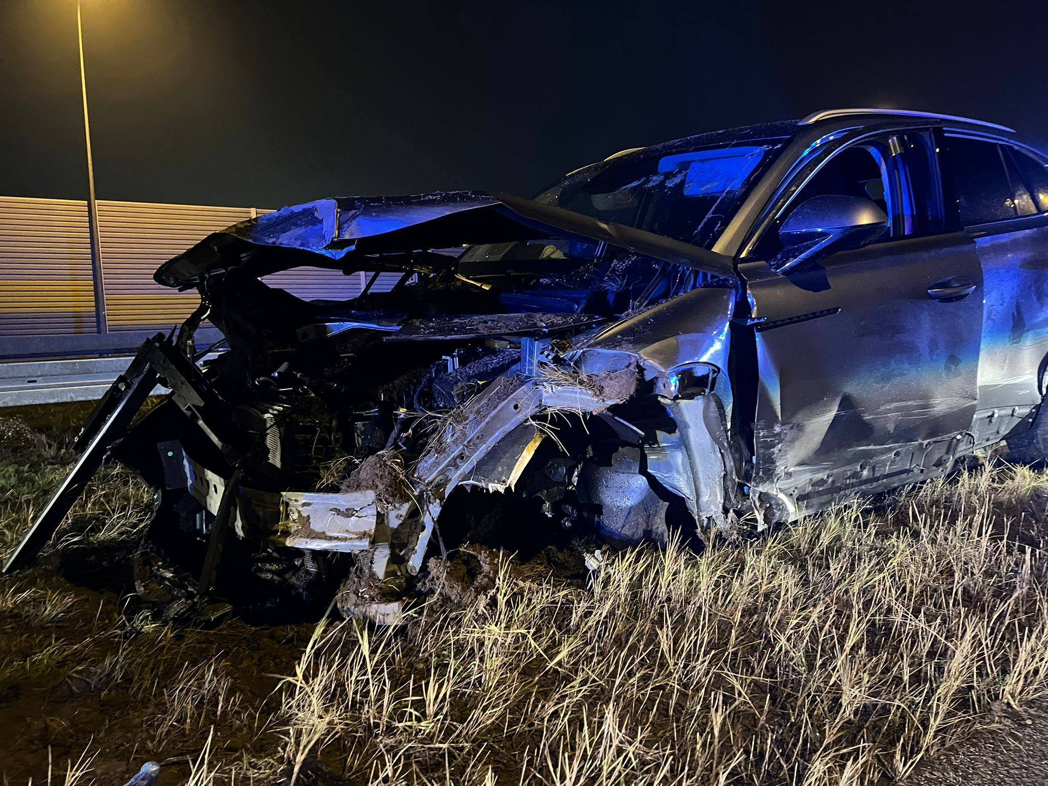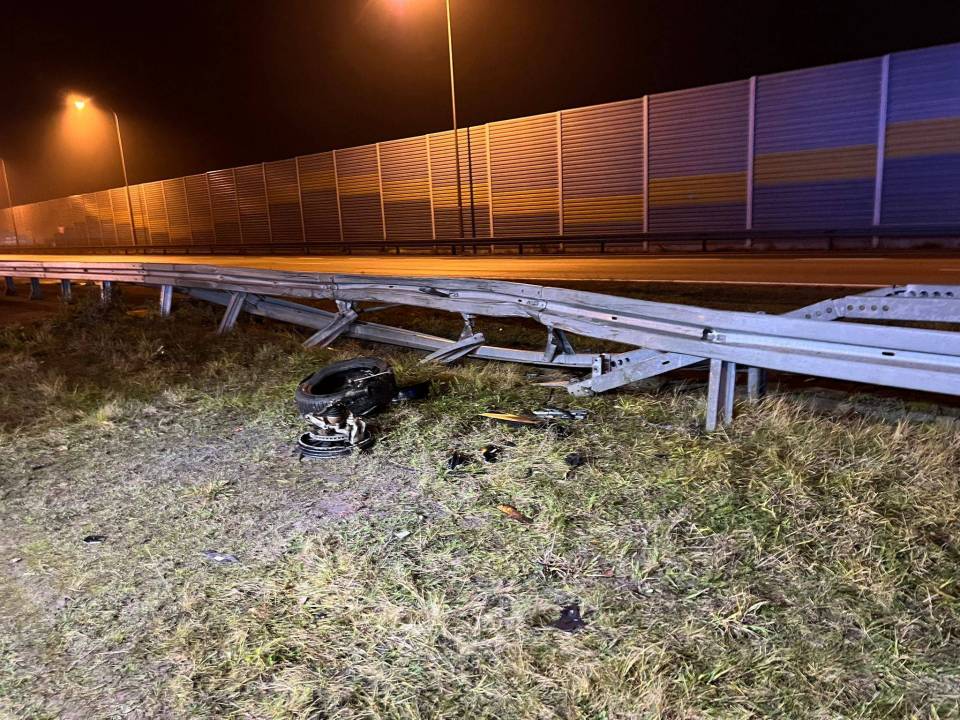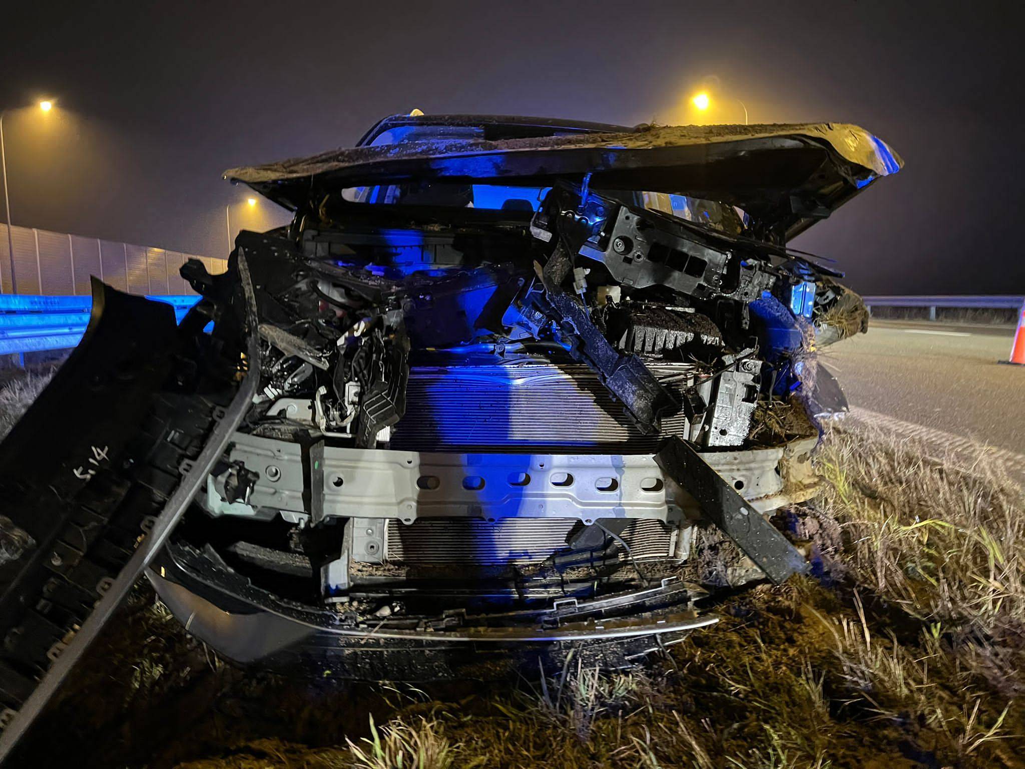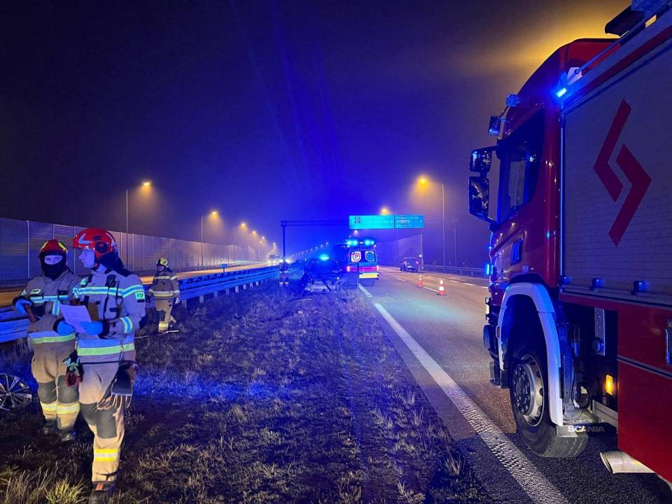 System eCall zadziałał! Kierowca osobówki uderzył w barierę na trasie S8. Służby błyskawicznie trafiły na miejsce zdarzenia [Foto]