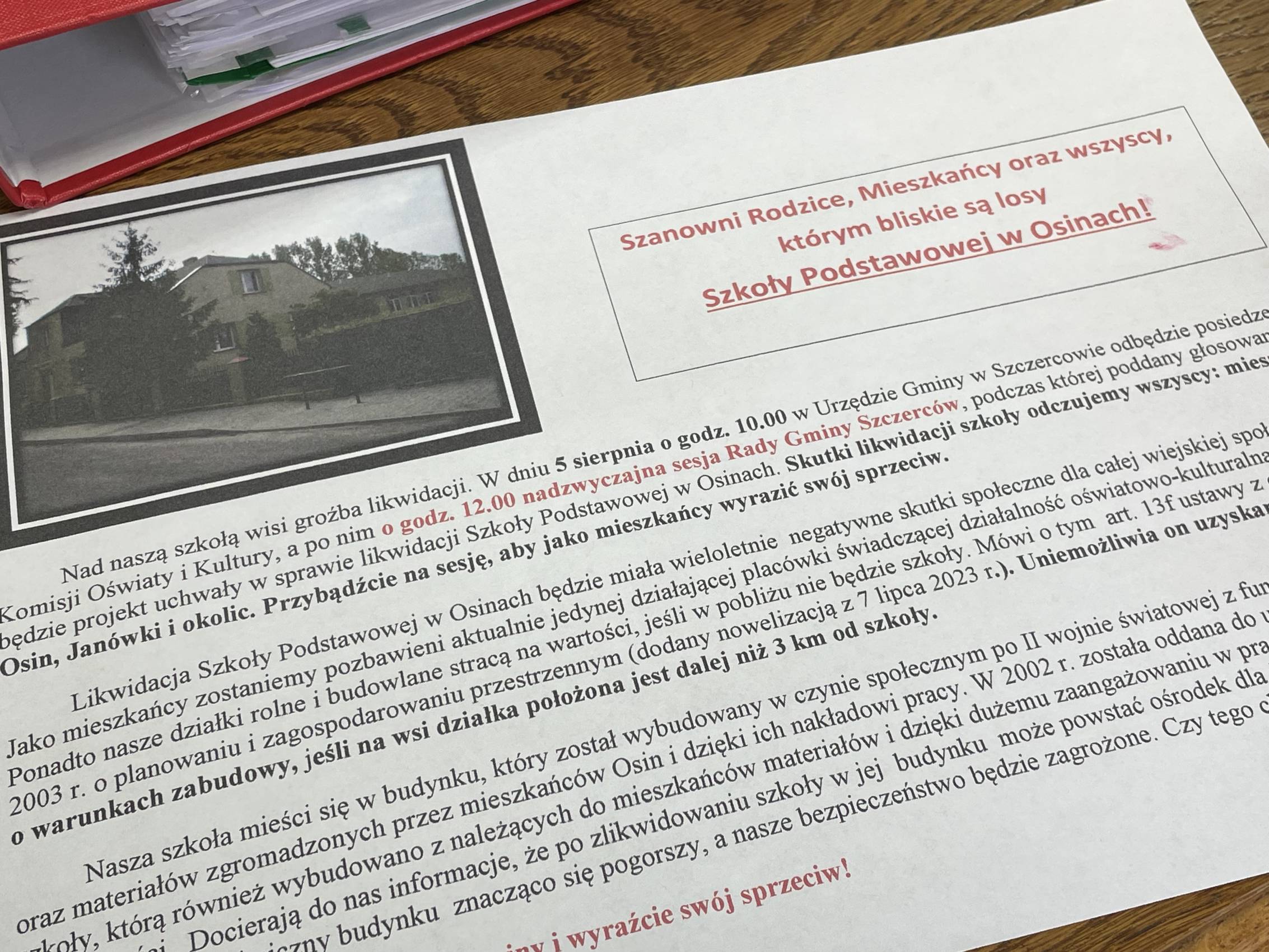 Według danych przedstawionych podczas sesji, w roku szkolnym 2024/2025 do szkoły w Osinach uczęszczało jedynie 26 uczniów z klas I–VIII – co daje średnio 3,5 ucznia na klasę. Choć w obwodzie szkoły mieszka ponad 40 dzieci w wieku szkolnym, znaczna część rodziców już wcześniej zdecydowała się posłać dzieci do większych placówek w Szczercowie lub Chabielicach.