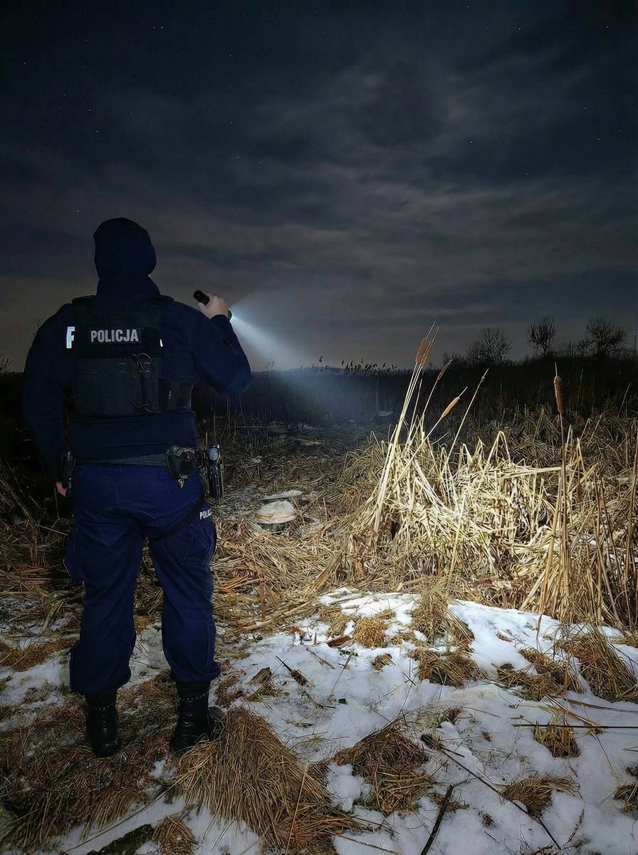 - Z uwagi na niską temperaturę oraz brak kontaktu z mężczyzną dyżurny łaskiej Komendy Powiatowej Policji skierował wszystkie dostępne patrole do działań poszukiwawczych. Około godziny 00:30 dyżurny łaskiej jednostki otrzymał zgłoszenie od mieszkańca miasto, który poinformował, że w rejonie ulicy Kilińskiego słyszy wołanie o pomoc dochodzące z terenów zalewowych w pobliżu oczyszczalni ścieków - mówi młodszy aspirant Bartłomiej Kozłowski, oficer praswoy KPP Łask.