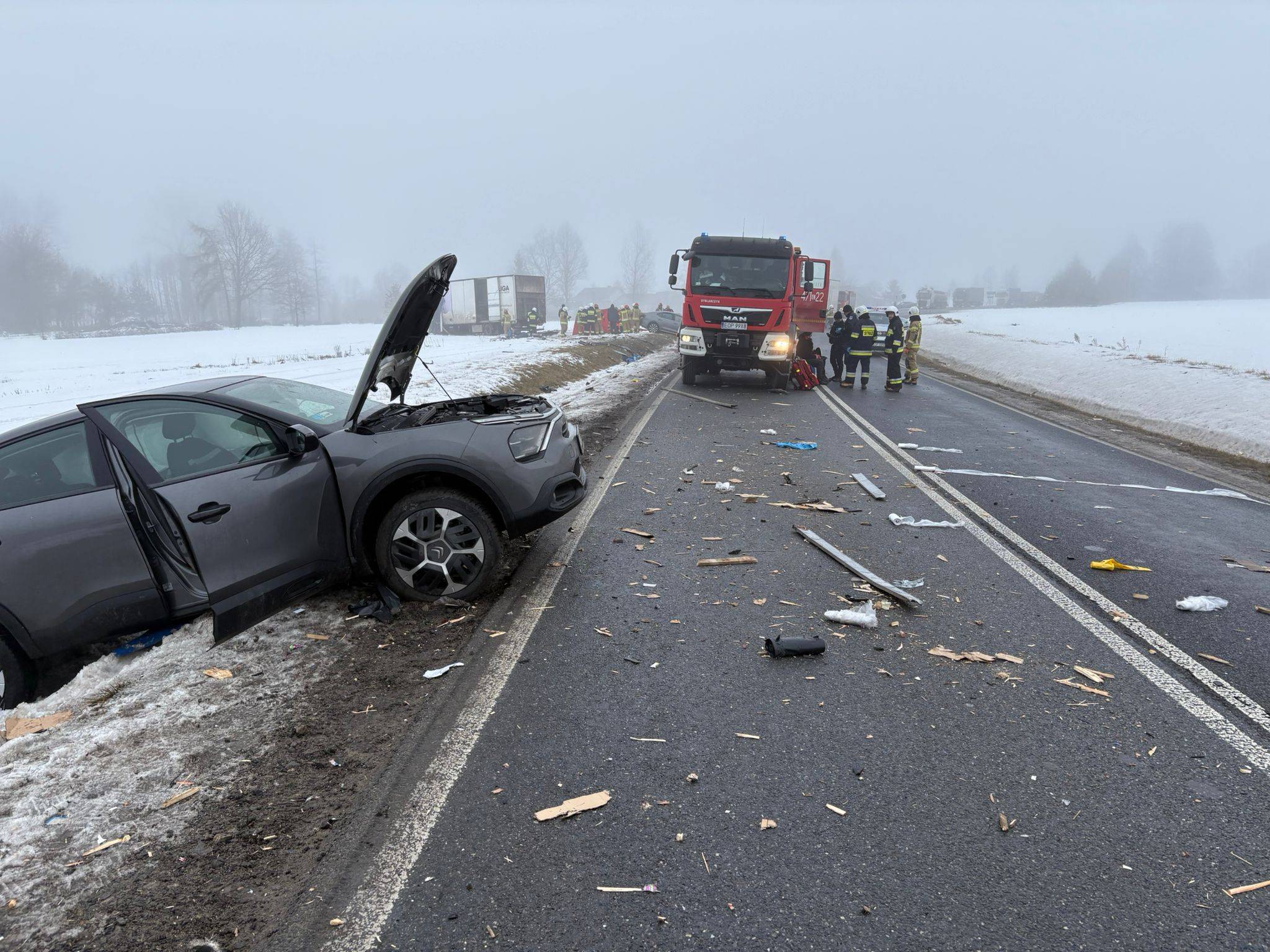 Do poważnego wypadku drogowego doszło w piątek, 6 lutego w gminie Opoczno. Około godziny 10.39 w miejscowości Kruszewiec Kolonia na terenie powiatu opoczyńskiego. Zderzyły się tam dwa samochody osobowe oraz dwie ciężarówki.