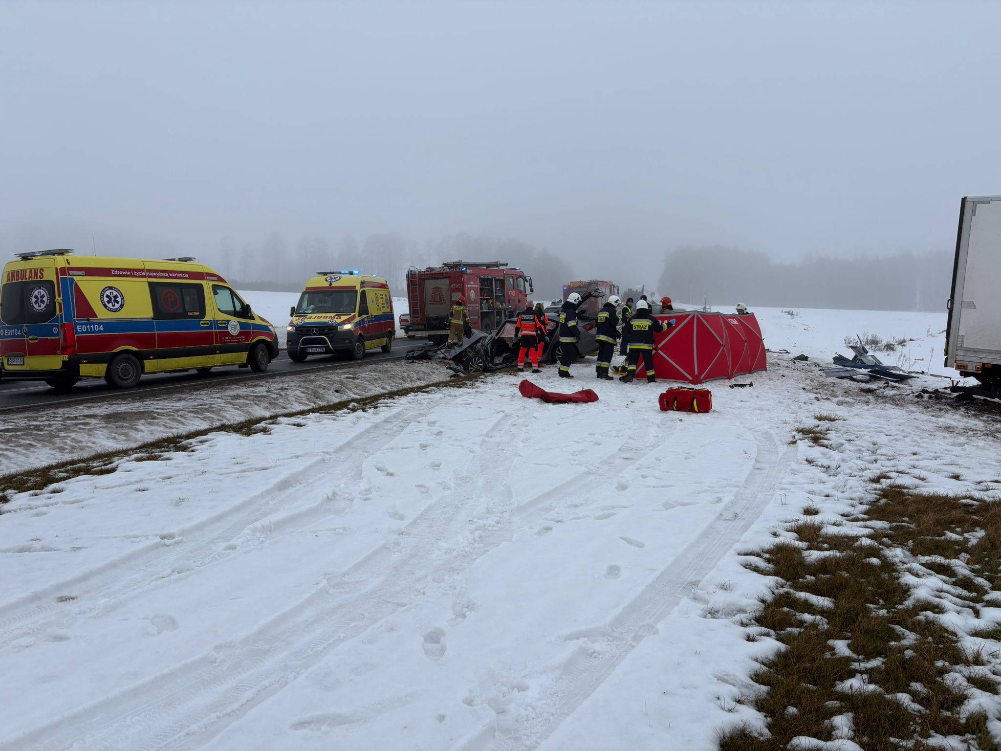 Do pozostałych poszkodowanych zadysponowano kolejny Zespół Ratownictwa Medycznego. Na miejscu intensywnie pracują wszystkie służby ratunkowe.