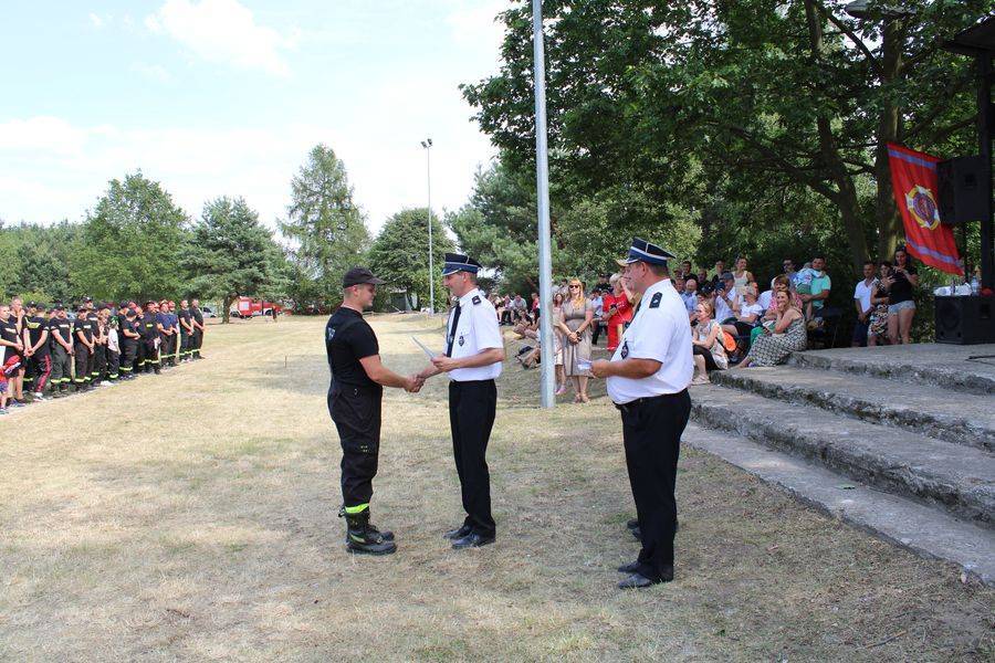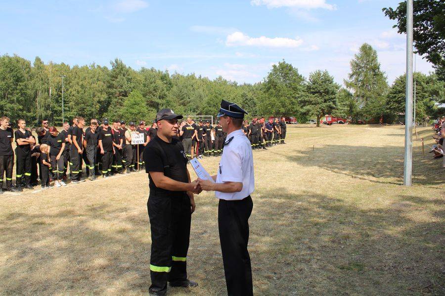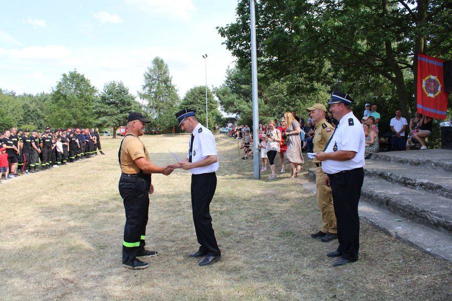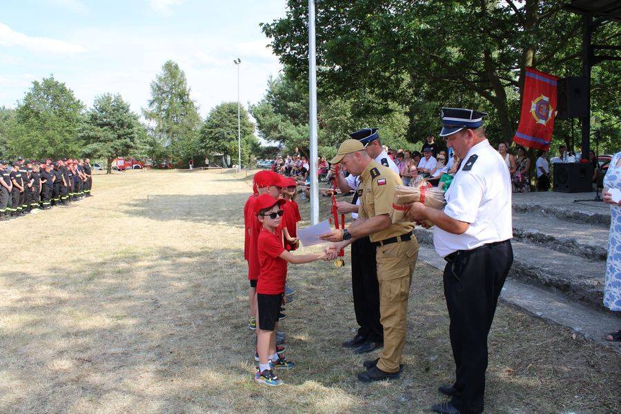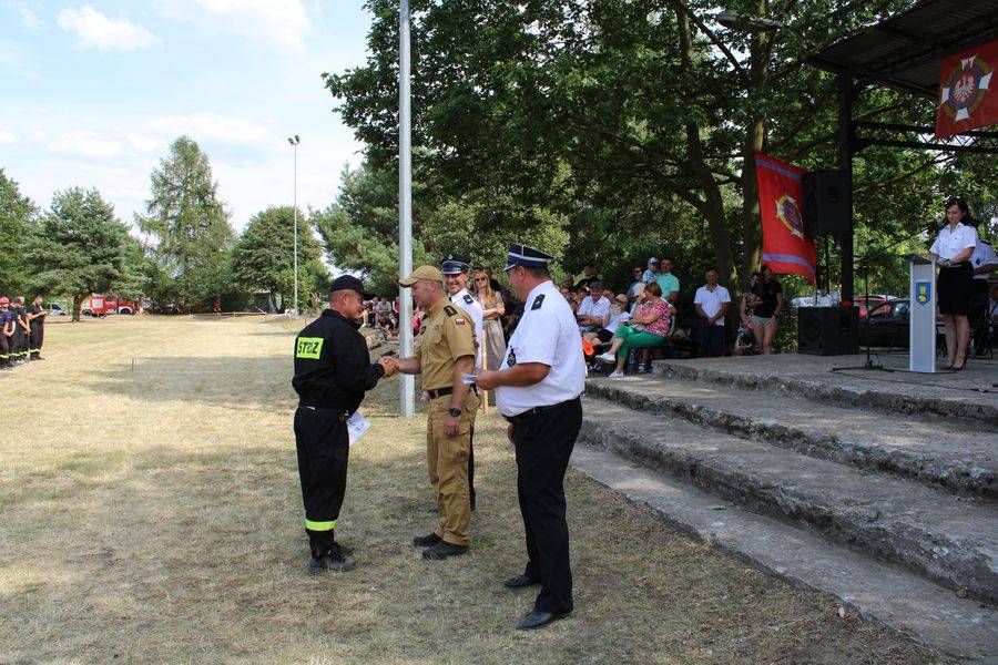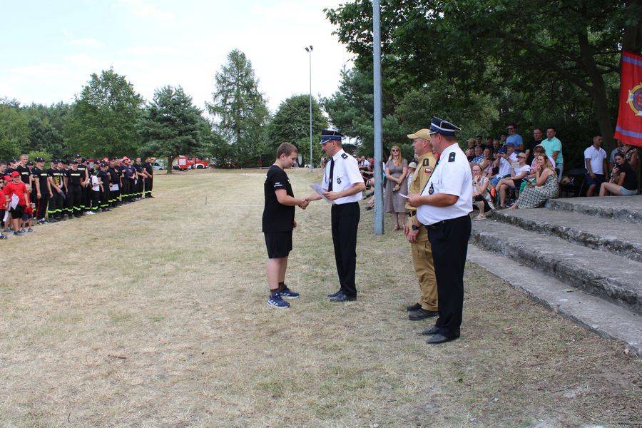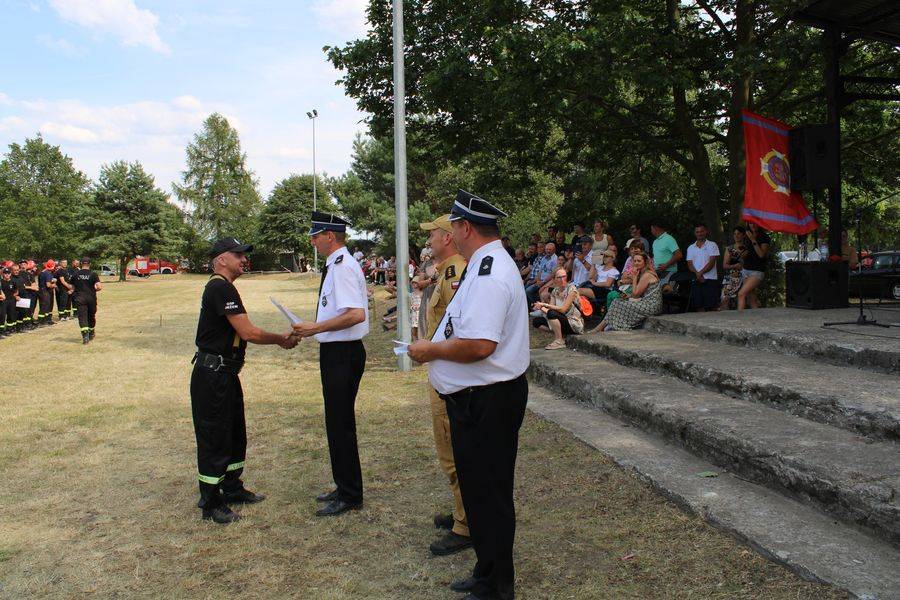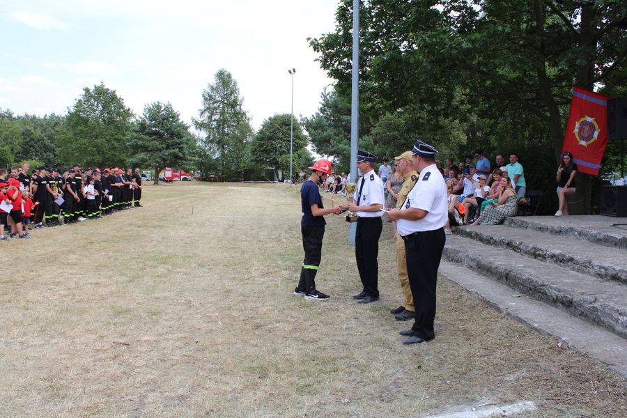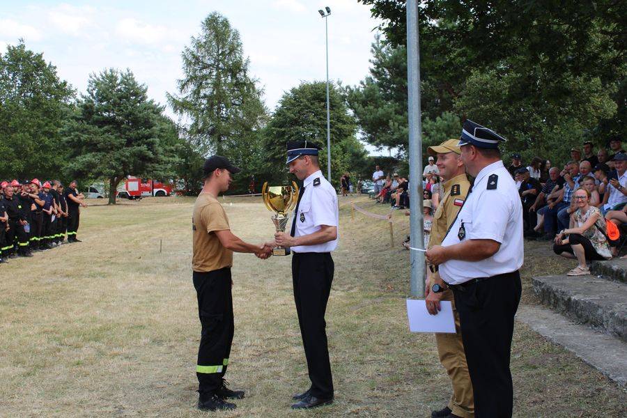 Wójt Gminy Krzysztof Woźniak, który pełnił też funkcję Prezesa Zarządu Oddziału Gminnego ZOSP RP, razem z sędzią głównym st. kpt. Twardowskim oraz komendantem gminnym Arturem Stępniem, wręczyli puchary, dyplomy i nagrody pieniężne.