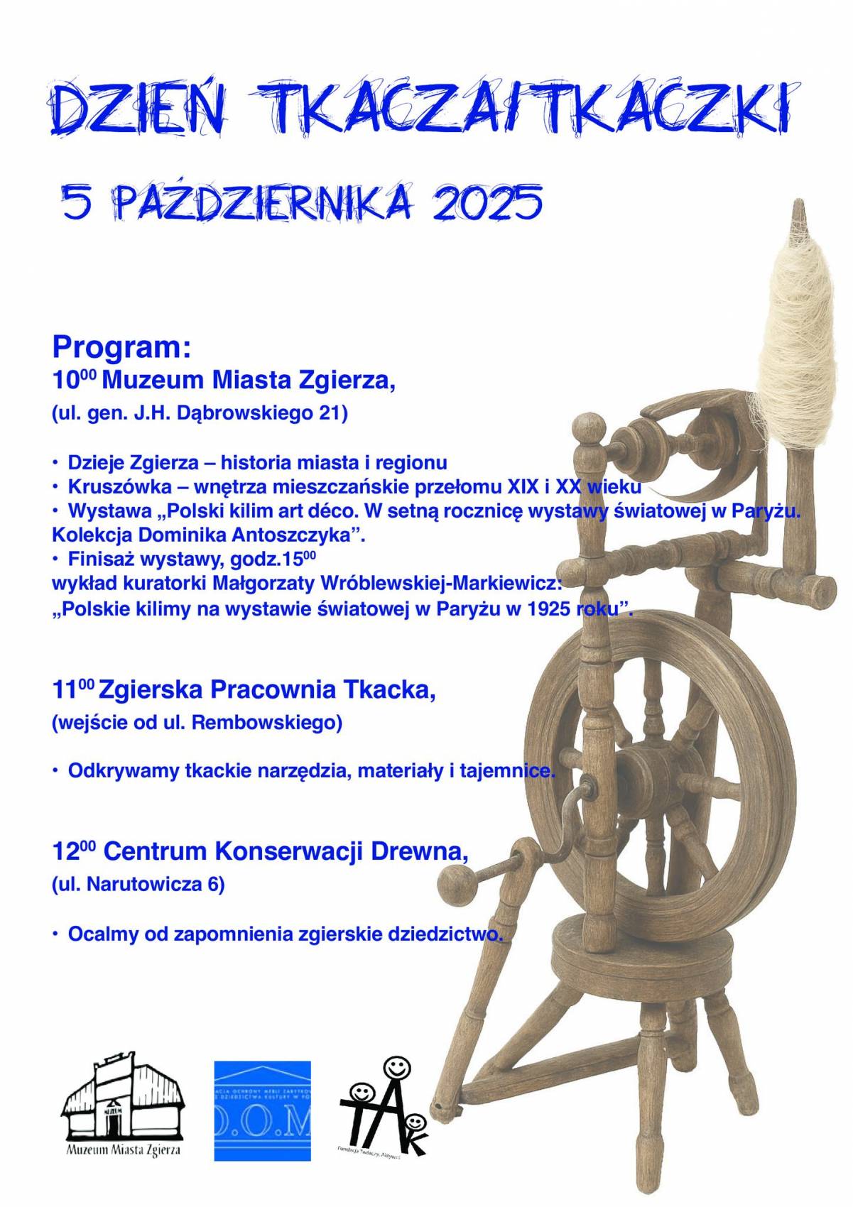 Organizatorzy zachęcają do udziału wszystkich – rodziny z dziećmi, pasjonatów historii, miłośników rękodzieła i tych, którzy po prostu chcą poczuć klimat dawnego Zgierza. Wstęp na imprezę jest wolny. Liczba miejsc na warsztatach ograniczona więc warto przyjść wcześniej!