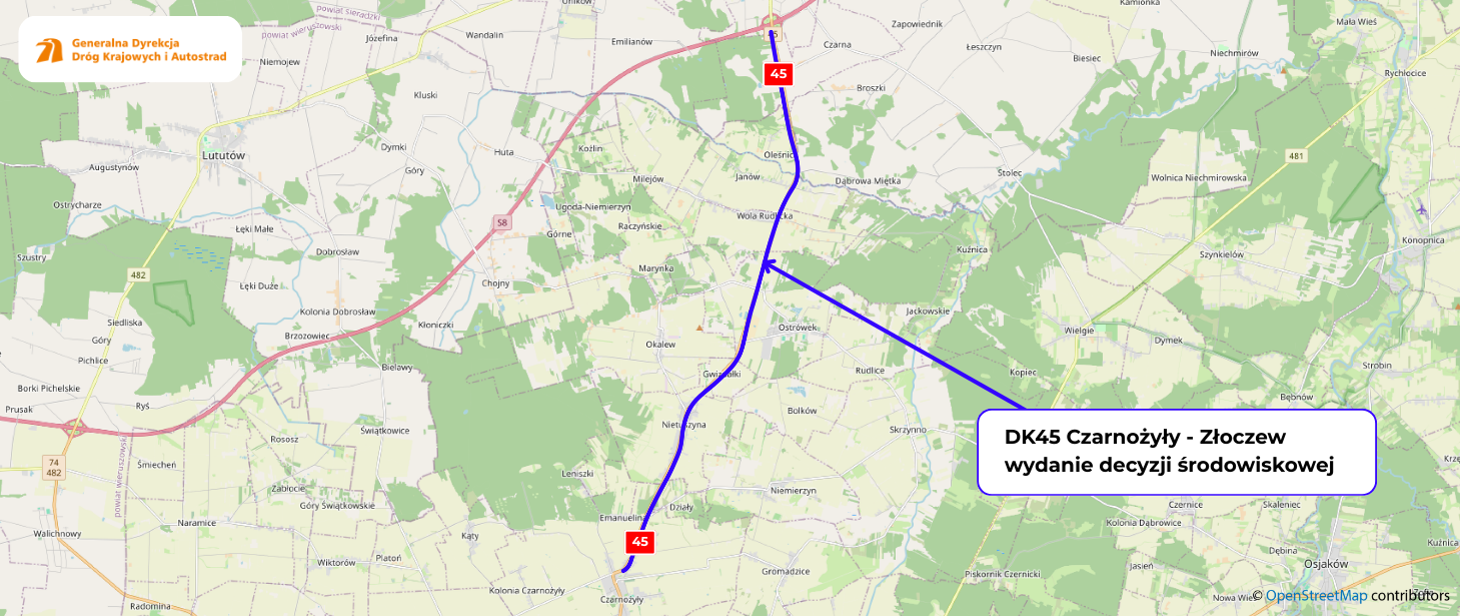 Zgodnie z wydaną decyzją środowiskową, rozbudowa drogi krajowej nr 45 obejmuje poszerzenie trasy, podniesienie jej nośności do standardów dróg krajowych oraz przebudowę licznych skrzyżowań- przekazują pracownicy łódzkiego oddziału GDDKiA.