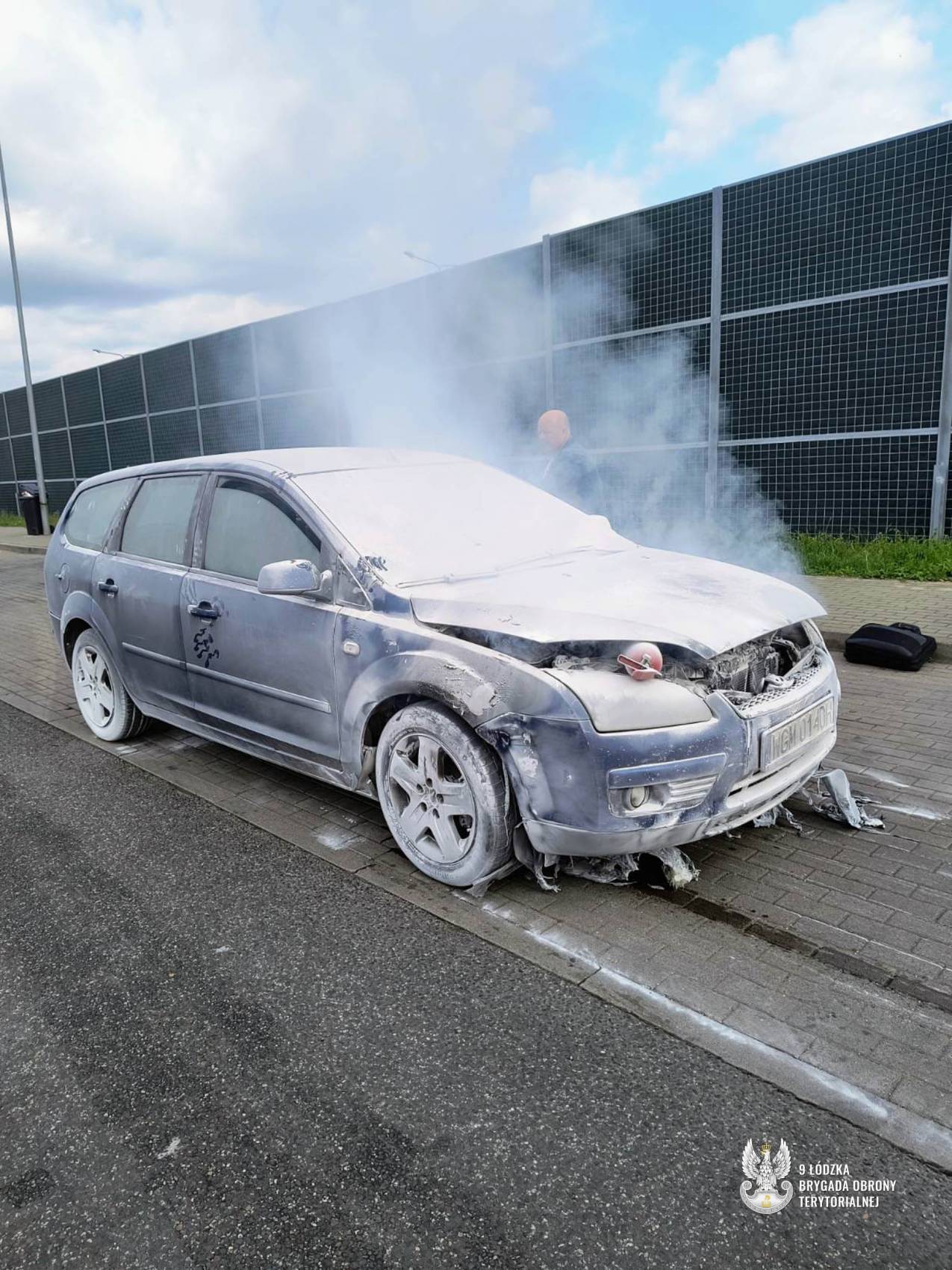 Bezpośrednio przed dystrybutorem paliwa zapalił się samochód osobowy. Na pomoc natychmiast ruszyli st. szer. spec. Krzysztof, st. szer. spec. Filip, ppor. Konrad oraz ppor. Tomasz. Żołnierze 9ŁBOT, nie zważając na zagrożenie, podjęli skuteczną akcję gaśniczą, a następnie przepchnęli dymiący pojazd w bezpieczne miejsce, kontynuując gaszenie do czasu przyjazdu straży pożarnej. Cała akcja trwała około 20 minut, zużyto 10 gaśnic w tym 2 agregaty. W międzyczasie obsługa stacji zamknęła jej działanie, a na miejsce została wezwana straż pożarna, która przejęła dalsze działania.