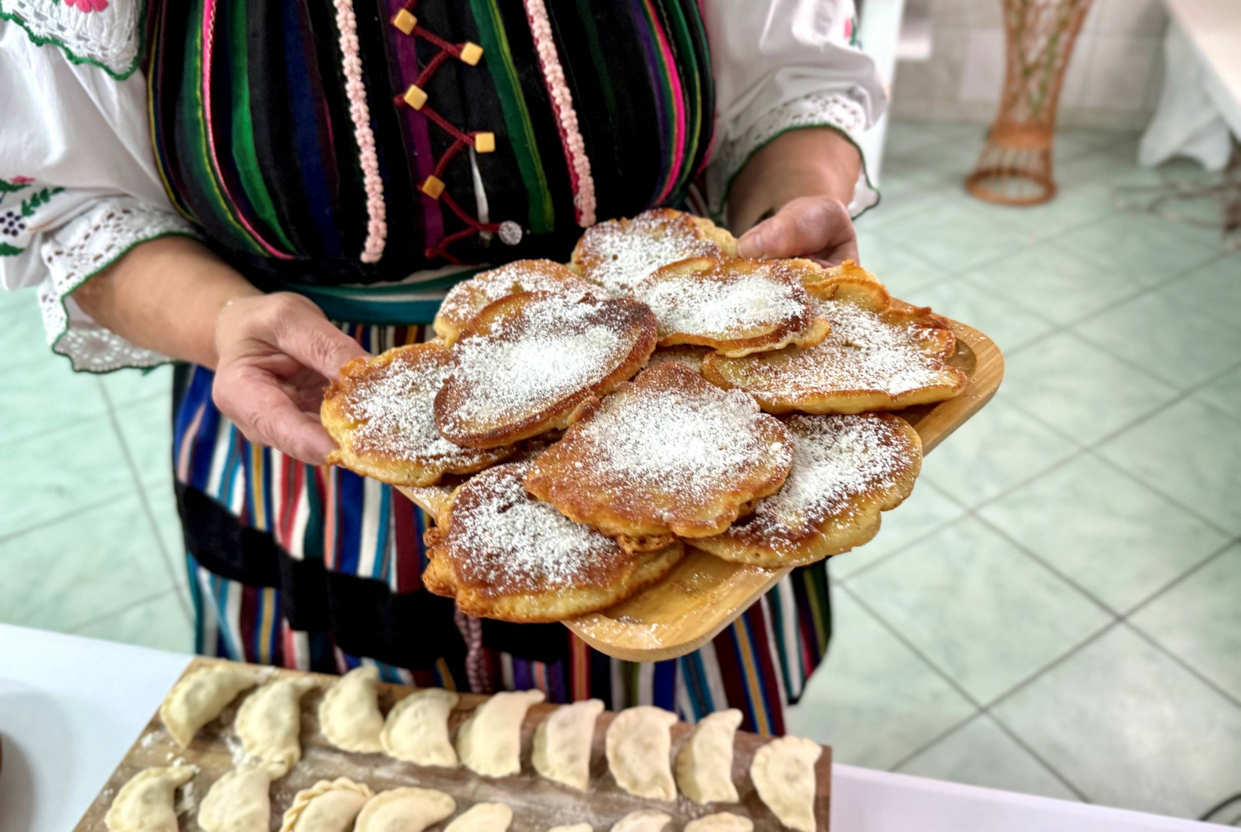 Jeżeli chodzi o pierogi, które panie podają z okrasą, to do Warszawy zabrały ich tysiąc. Podobną liczbę szykują na niedzielne dożynki w Spale, ale na ich stoisku można też liczyć na smalec z domowym chlebem i ogórkami kiszonymi czy słodkie wypieki jak np. fale Dunaju.