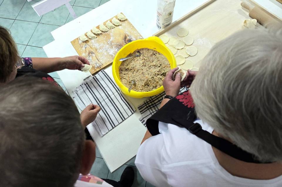 - Panie jak przychodzą lepić pierogi, to tak standardowo wychodzi 500-600. Jak się rozpędzą, to by do rana siedziały - śmieje się pan Dariusz.